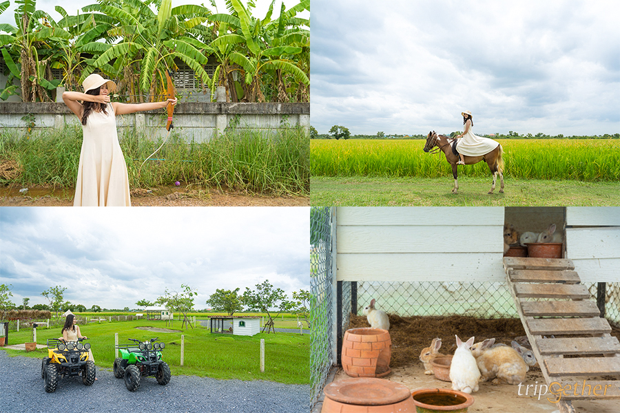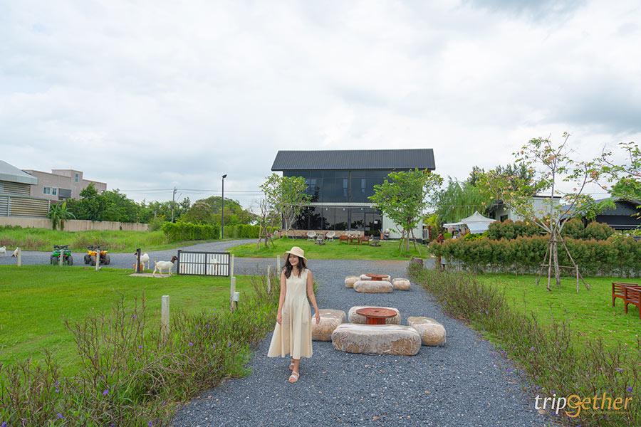 บารอกัตลั้นลาแลนด์ คาเฟ่ แอนด์ ฟาร์ม คาเฟ่หนองจอกที่มาในสไตล์ฟาร์มคาเฟ่ มีพื้นที่กว่า 15 ไร่ บอกเลยว่าที่นี่กว้างขวางและบรรยากาศดีมาก ตัวร้านเป็นบ้านสไตล์นอร์ดิกสีขาวตั้งอยู่ท่ามกลางทุ่งหญ้าเขียวขจี มีวิวด้านหลังเป็นทุ่งนากว้างไกลสุดลูกหูลูกตา มีที่นั่งโซนอินดอร์ภายในบ้าน สามารถนั่งได้ทั้ง 2 ชั้น โดยชั้นสองจะมีไฮไลท์เป็นผนังกระจกบานใหญ่ สามารถมองวิวสวยๆ ด้านนอกได้ชัดเจน ส่วนใครอยากสัมผัสธรรมชาติอย่างใกล้ชิดก็แนะนำเป็นโซนเอาท์ดอร์เลย มีให้เลือกทั้งโซนโต๊ะหน้าบ้านและโซนโต๊ะด้านหลังบ้าน ส่วนใครชอบความเป็นส่วนตัวก็มีโซนซุ้มให้เลือก และที่นี่ยังสามารถยืมเซ็ตปิกนิกไปปูนั่งในสนามหญ้าแบบชิลล์ๆ ได้อีกด้วย ส่วนใครเป็นสายแคมป์ปิ้งที่นี่ก็มีลานกางเต็นท์ให้บริการด้วยนะ นอกจากจะมีคาเฟ่ที่คอยเสิร์ฟอาหาร เครื่องดื่ม และขนมอร่อยๆ แล้ว ที่นี่ยังมีกิจกรรมมากมายให้มาสนุกกัน สำหรับขาลุยก็ขอแนะนำเป็นกิจกรรมขี่ม้า ยิงธนู และขับ ATV และยังมีกิจกรรมน่ารักๆ ให้ทำอย่างให้อาหารบรรดาสัตว์เล็ก แพะ แกะ กระต่าย และไก่ บอกเลยว่าเป็นสถานที่ที่สามารถมาใช้เวลาได้ทั้งวัน แถมมีกิจกรรมเหมาะกับทุกเพศทุกวัยอีกด้วย ต้องมาเช็คอินที่หนองจอกสักครั้งแล้ว