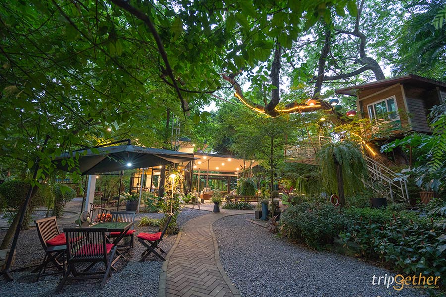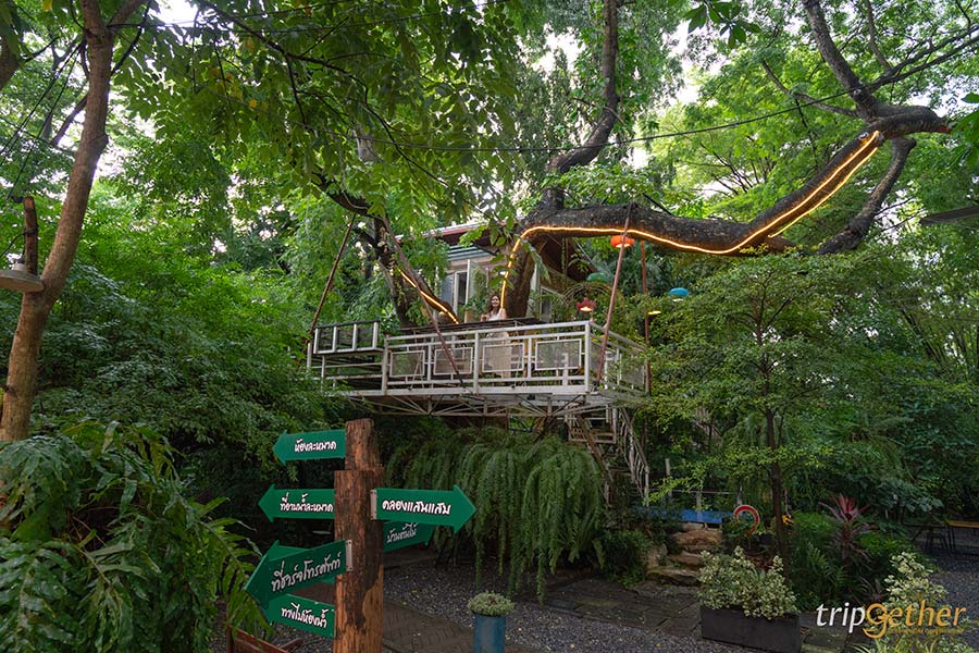 เดอะ ทรีเฮ้าส์ หนองจอก คาเฟ่หนองจอกตั้งอยู่ริมคลองแสนแสบ ที่นี่มีความพิเศษคือตัวคาเฟ่ล้อมรอบไปด้วยแมกไม้เขียวขจี แค่เดินเข้าร้านมาก็สัมผัสได้ถึงบรรยากาศสุดกรีน เหมือนอยู่ในป่าเลย ตัวร้านมีโซนที่นั่งเป็นโซนอินดอร์ในห้องแอร์ และโซนเอาท์ดอร์ทั้งนั่งในสวนและริมน้ำ ใครชอบความเป็นส่วนตัวก็มีโซนซุ้มนั่งพื้นให้เลือก มุมไฮไลท์ที่ห้ามพลาดคือโซนบ้านต้นไม้ เป็นบ้านหลังเล็กตั้งอยู่บนต้นไม้ต้นใหญ่ เหมือนบ้านในนิทานเลย บนบ้านต้นไม้มีห้องเล็กๆ ไว้ให้ไปถ่ายรูปเช็คอินสวยๆ และมีโต๊ะเก้าอี้ตรงระเบียงให้นั่งจิบเครื่องดื่มชมวิวแบบฟินๆ เป็นมุมที่ห้ามพลาดเด็ดขาด นอกจากนี้ที่นี่ยังมีโซนบ้านบอลสำหรับครอบครัวที่มีเด็กเล็กมาด้วย เป็นจุดเช็คอินหนองจอกที่สามารถมาเที่ยวได้ทั้งครอบครัว ใครมาแถวนี้ต้องแวะร้านนี้ด่วนๆ
