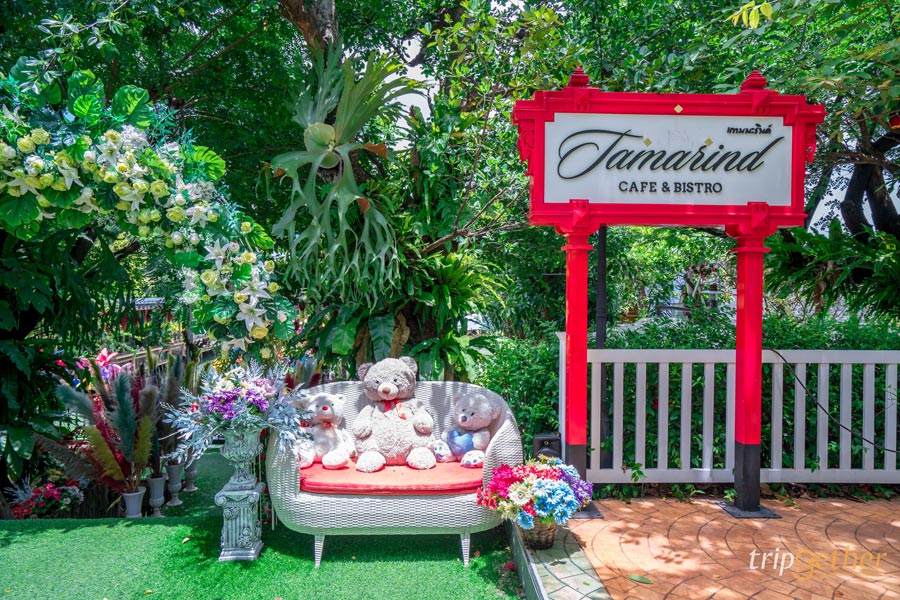 แทมมะรินด์ คาเฟ่ & บิสโทร แอท ดอนหวาย คาเฟ่สวยนครปฐมเปิดใหม่ บอกเลยว่ามุมถ่ายรูปเยอะสุด เพราะที่นี่ตกแต่งได้สีสันสดใส ให้ฟีลเหมือนเจ้าหญิง ทั่งทั้งร้านมีการตกแต่งด้วยดอกไม้หลากสี หญ้าสีสันต่างๆ เรียกได้ว่าถ่ายรูปออกมาดูสวยสดใสสุดๆ นอกจากนี้บรรยากาศร้านยังชิลล์และร่มรื่นมาก ด้วยต้นไม้โอบล้อมและสดชื่นจากสระน้ำสีฟ้ากลางร้าน ในร้านมีมุมให้ได้เช็คอินถ่ายรูปตั้งแต่หน้าร้านพร้อมพร็อพและของตกแต่งน่ารักๆ มากมายให้ได้แชะภาพกัน ส่วนโซนไฮไลท์ที่ห้ามพลาดคือ สะพานไม้ที่ทอดยาวมากลางน้ำ ประดับประดาไปด้วยดอกกุหลาบยักษ์หลากสี และโซนสกายวอล์คกระจก มีฉากหลังเป็นปราสาทสามสี ให้ฟีลเหมือนอยู่บนหอคอยเลย ใครชอบถ่ายรูปต้องห้ามพลาดเด็ดขาด รับรองว่ามาแล้วมีรูปไว้ลงทั้งปี