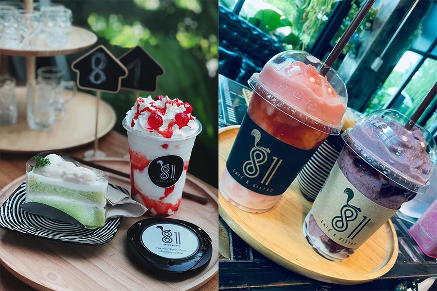 81 Cafe’&Bistro คาเฟ่ในสวนบรรยากาศสุดร่มรื่น มีต้นไม้นานาพันธุ์ที่ถูกจัดสวนไว้อย่างสวยงาม พร้อมมุมถ่ายรูปมากมายไม่ว่าจะเป็นมุมต่างๆในสวนสุดธรรมชาติ มุมตรงบ่อน้ำที่มีสะพานไม้ทอดยาว มุมเต็นท์สุดชิค 81 Cafe’&Bistro มีที่นั่งให้เลือกเยอะเช่นกันทั้งโซน indoor ห้องแอร์เย็นๆ ที่มีมุมกระจกใสให้ได้นั่งมองวิวสวน และมุม outdoor นั่งท่ามกลางธรรมชาติแสนร่มรื่น ด้านเมนูเครื่องดื่มมี่ทั้งกาแฟ ชา อิตาเลี่ยนโซดา นม สมูธตี้ ให้เลือกกว่า 50 เมนู ส่วนเมนูอาหารก็มีทั้งสเต๊ก สลัด สปาเก็ตตี้ อาหารจานเดียว เมนูทานเล่น และเค้กหน้าต่างๆ มาที่เดียวได้รูปให้ลงกันรัวๆและอิ่มท้องกับอาหาร เครื่องดื่ม และขนมอีกด้วย