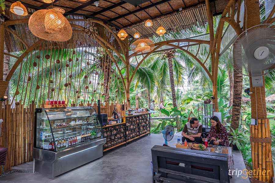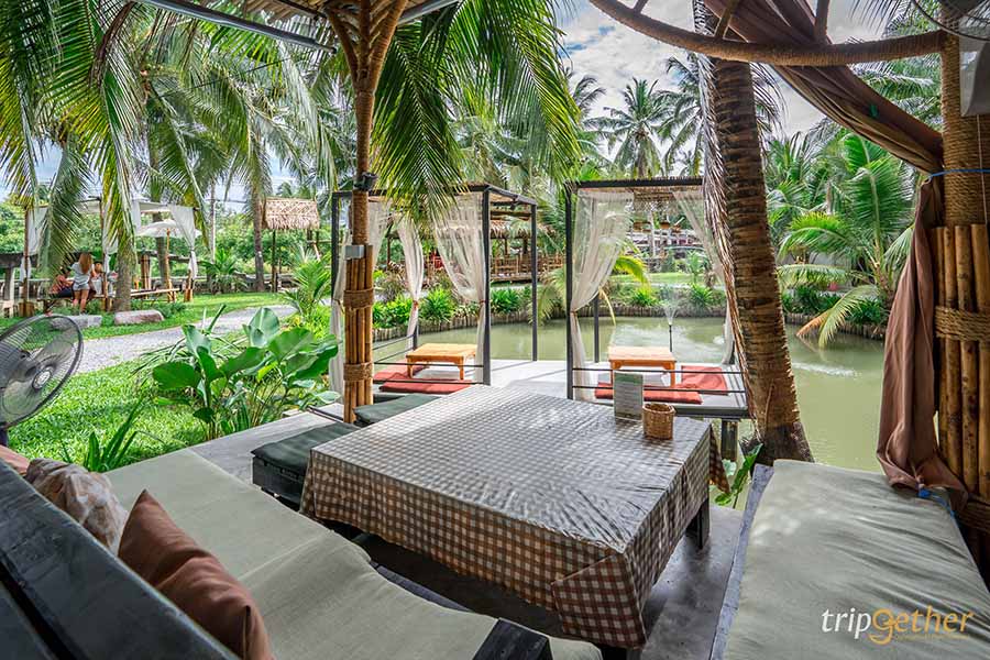 บ้านสวนพาฝัน คาเฟ่สุดร่มรื่นกลางสวนมะพร้าว ที่มาพร้อมบรรยากาศริมน้ำ และพื้นที่พักผ่อนทั่วบริเวณ ความพิเศษเริ่มตั้งแต่การเดินทาง เพราะการเดินทางมาที่คาเฟ่ต้องไปจอดรถที่วัดหนองสองห้องแล้วทางร้านจะมีบริการเรือรับส่งพาไปยังคาเฟ่ ภายในร้านอุดมไปด้วยต้นไม้น้อยใหญ่และสายน้ำ สามารถเลือกนั่งได้ตามอัธยาศัย ให้อารมณ์อบอุ่นและเป็นกันเอง ด้านอาหารและเครื่องดื่มก็มีครบทั้งอาหารไทย, นานาชาติ และแบบฟิวชั่น รวมถึงเบเกอรี่แบบโฮมเมด ซึ่งวัตถุดิบผักผลไม้ต่างๆ ที่นำมาใช้จะมาจากคนในชุมชน ถือเป็นการกระจ่ายรายได้ให้แก่ชุมชนได้ดีและมีคุณภาพ