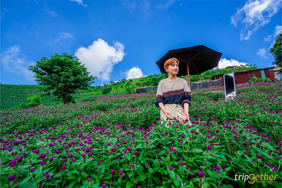 แกรนวิวการ์เด้น สวนดอกไม้ที่ใหญ่ที่สุด ดอกไม้เยอะที่สุด กับดอกไม้หลากหลายพันธุ์ นานาชนิดบนพื้นที่กว่า 5 ไร่ หลากหลายแปลงให้ได้ถ่ายรูปอย่างจุใจ ไม่ว่าจะแปลงดอกสแตติช ดอกเวอร์บีน่า ดอกกระดาษ ดาวเรืองฝรั่งเศส ดอกทานตะวัน ดอกบานไม่รู้โรย ดอกซัลเวีย ดอกเก๊กฮวย ดอกฮอลลี่ฮ็อค มองไปทางไหนก็เห็นดอกไม้บานสะพรั่งตามทิวเขาที่สวยงาม ให้ได้เดินเล่นถ่ายรูป อัปลงโซเชียลกันไม่อั้น และไม่ต้องกังวลว่าดอกไม้จะเหี่ยวเพราะที่ แกรนวิวการ์เด้น มีดอกไม้บานสะพรั่งปลูกไว้รอคุณเสมอ หรือใครอยากได้ต้นกล้าทางสวนก็มีต้นกล้าเพาะขายให้ได้ลองไปปลูกที่บ้านสามารถซื้อติดมือกลับไปได้ด้วยเหมือนกัน