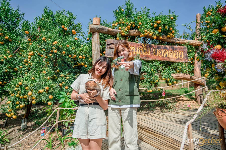 สวนส้มยอดดอย สวนส้มสวยๆ บนม่อนแจ่มไม่ไกลจากตัวเมืองเชียงใหม่ สถานที่ที่อยากชวนทุกคนไปเช็คอินกันจะได้ไม่ตกเทรนด์ ขอบอกเลยว่าที่สวนส้มยอดดอยมีมุมถ่ายรูปสวยๆ เยอะมาก จะเดินไปทางไหนก็แชะรูปได้รัวๆ ปังทุกมุมแน่นอน นอกจากนี้ที่สวนยังมีพร็อพเตรียมไว้ให้ด้วยเผื่อใครไม่ได้เตรียมมา เดินทางมาถึงสวนส้มทั้งทีจะพลาดชิมส้มสดๆ จากต้นได้ยังไง ที่นี่เราสามารถตัดส้มได้เองแล้วนำไปชั่งน้ำหนักเพียงกิโลกรัมละ 80 บาทเอง แค่นี้ก็ได้ส้มหวานๆ กลับไปกินแบบฟินๆ แล้ว ค่าเข้าชมสวนส้มยอดดอย ผู้ใหญ่ 60 บาท เด็ก 40 บาท เท่านั้นเอง ตามเรามาเช็คอินกันได้เลย