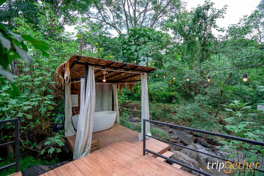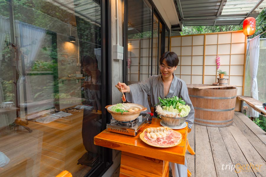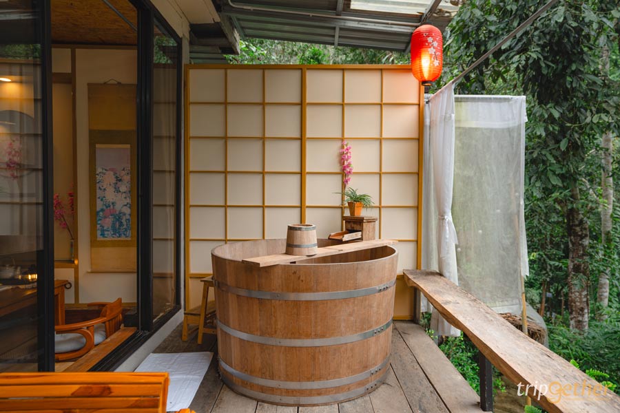 มาต่อกันที่ ชินรินโยคุ (Shinrin – yoku) ที่พักกลางป่า เชียงใหม่ ฟีลญี่ปุ่นในหมู่บ้านแม่ลาย ซึ่งที่นี่จะมีแค่ 2 ห้องเท่านั้น ห้องพักขนาดพอดีเตียงนุ่มนอนสบาย สิ่งอำนวยความสะดวกครบครัน มีจอโปรเจ็คเตอร์สำหรับนอนดูหนังสบายๆ มีเสียงลำธารช่วยให้หลับสบายมากขึ้นไปอีก ที่สำคัญคือมี Private Onsen อ่างไม้โอ๊คส่วนตัวริมระเบียง ตกเย็นดินเนอร์ชมวิวกับเซ็ตชาบูพรีเมี่ยมสุดฟิน นอกจากนี้ลำธารที่อยู่ติดกับที่พักสามารถเดินลงไปเล่นน้ำ แถมยังมีชุดกิโมโนและชุดยูกาตะให้ได้ใส่ถ่ายรูปไว้ลงโซเชียลกันอีกด้วยนะ