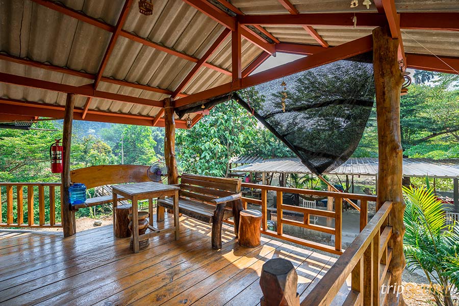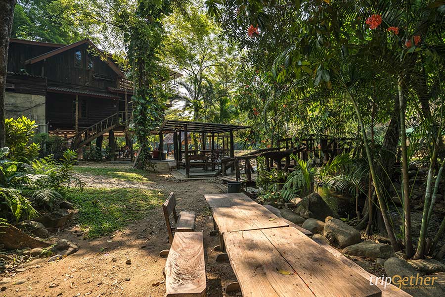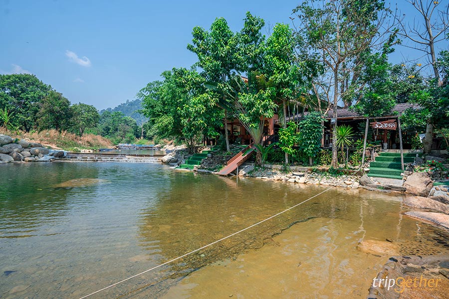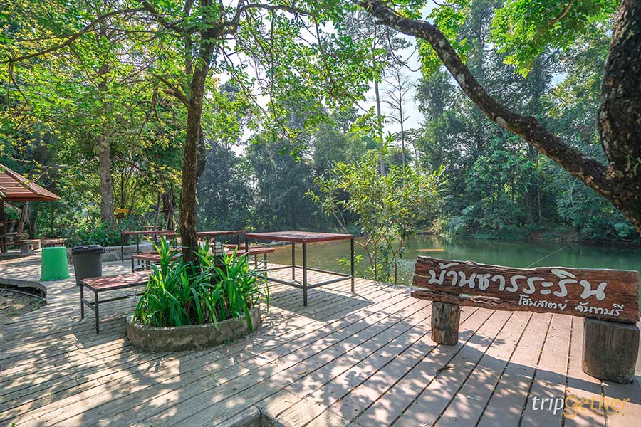 บ้านธารระรินโฮมสเตย์ ที่พักจันทบุรี ติดลำธาร ตัวบ้านพักเป็นบ้านไม้ที่ตั้งอยู่กลางธรรมชาติ มองไปทางไหนก็รู้สึกผ่อนคลายและสบายตาจากสีเขียวขจี ยิ่งมีเสียงน้ำไหลจากลำธารก็ยิ่งช่วยเสริมให้บรรยากาศดูสดชื่นขึ้นไปอีก สำหรับใครที่อยากเล่นน้ำก็สามารถลงเล่นได้ทั้งวันเลย น้ำเย็นสดชื่นจริงๆ แถมยังมีกิจกรรมทางน้ำอื่นๆ ให้ได้สนุก อย่างสไลเดอร์ พายซับบอร์ด ล่องแพ และพอช่วงเย็นๆ หน่อยก็แนะนำให้มานั่งโต๊ะริมน้ำ ซึ่งทางที่พักจัดไว้ให้เป็นมุมพักผ่อนและสำหรับกินข้าวมื้อเย็น ถือว่าเป็นที่พักที่น่ามานอนสักคืนจริงๆ