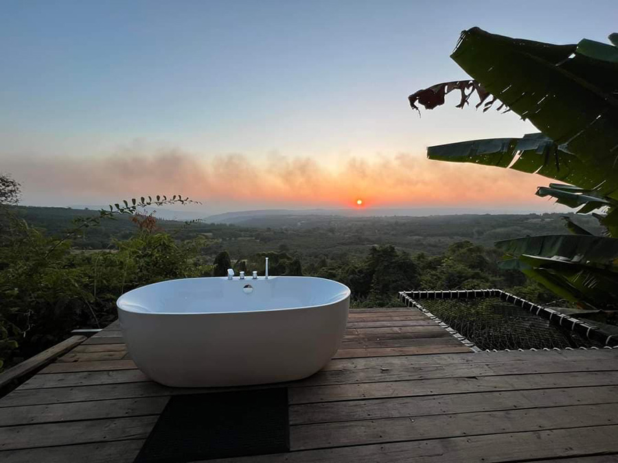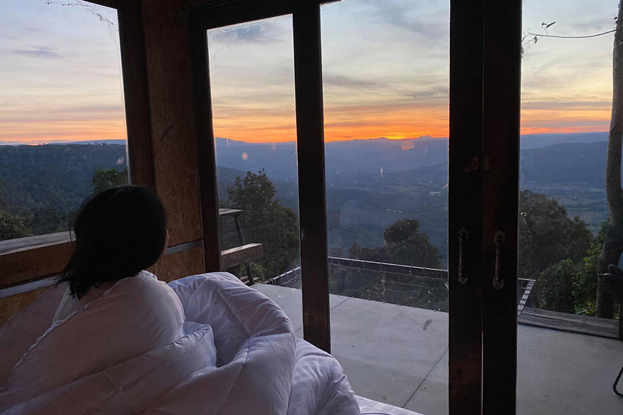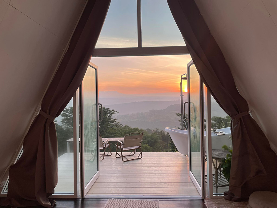 อยากพักสบายๆ กลางบรรยากาศดีๆ ต้องมา พักบ้าง Camping ที่พักพิษณุโลกที่ถูกโอบล้อมกลางธรรมชาติ จากที่พักสามารถเห็นผืนป่าและขุนเขาแบบไม่มีอะไรมากั้น แถมอากาศยังเย็นสบาย เหมาะกับการมากางเต็นท์นอนชิลล์ๆ มาก นอกจากลานกางเต็นท์ก็มีบริการบ้านพักแบบต่างๆ รวมถึงบ้านพักน้องใหม่อย่าง The Sky บ้านที่มีหน้าต่างใสล้อมรอบ ทำให้มองไปทางไหนก็เห็นความกรีนแบบเต็มๆ ตา และยังมีอ่างอาบน้ำตรงระเบียงให้ได้แช่น้ำชิลล์ๆ ดื่มด่ำธรรมชาติหรือจะถ่ายรูปอัปโซเชียลก็สวยมาก ส่วนอาหารเย็นก็สามารถสั่งหมูกระทะจากทางที่พักได้เลย