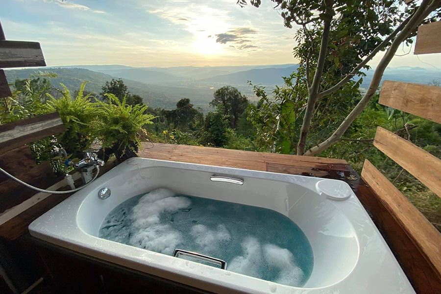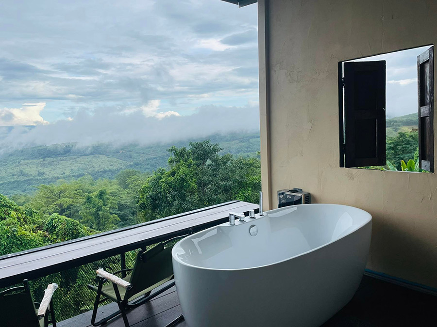 ชิดธรรมชาติ by ขุนแวะ ที่พักสุดชิลล์กลางธรรมชาติพร้อมวิวแนวเขาไกลสุดลูกหูลูกตา บรรยากาศเงียบสงบและอากาศเย็นสบาย เรียกได้ว่าเป็นที่ที่เหมาะกับการมานอนชาร์จพลังมาก ในส่วนห้องพักถูกออกแบบมาให้เป็นมิตรกับธรรมชาติ โดดเด่นด้วยวัสดุจากไม้ อีกทั้งห้องพักยังมาพร้อมหน้าต่างใสที่หันหน้าเข้าหาวิวทิวทัศน์ นอนใกล้ชิดธรรมชาติจริงๆ นอกจากนี้ยังมีห้องที่มีอ่างอาบน้ำกลางแจ้ง แช่น้ำมองดูพระอาทิตย์ตกดินคือชิลล์มาก และพิเศษสุดๆ มื้อเย็นมีเสิร์ฟหมูกระทะที่ราคารวมอยู่ในที่พักด้วย