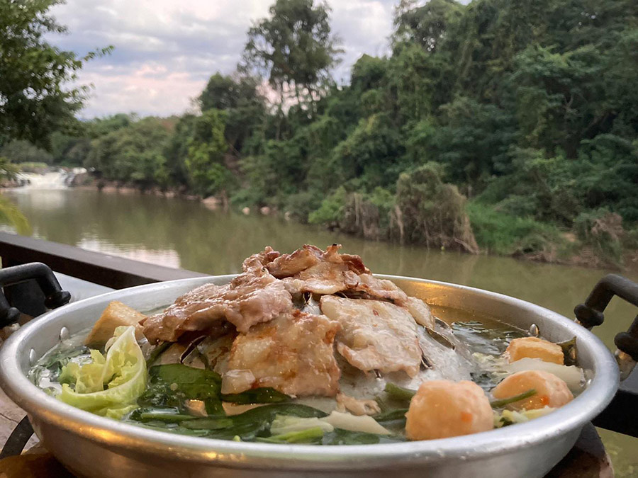 มานอนริมน้ำแม่น้ำเข็กชิลล์ๆ กันที่ บ้านสิรญา แก่งซอง ที่พักกลางธรรมชาติที่ตอบโจทย์ทุกการพักผ่อนด้วยบรรยากาศสบายๆ ด้วยมีป่าไม้ล้อมรอบและได้รับความสดชื่นจากน้ำตกแก่งซอง บวกกับการตกแต่งสไตล์ร่วมสมัย ทำให้ที่พักดูอบอุ่นให้ฟีลเหมือนมานอนค้างบ้านญาติ ภายในห้องพักสะอาดและมีสิ่งอำนวยความสะดวกครบ รวมถึงตกเย็นก็ต้องมานั่งชิลล์ริมน้ำกินหมูกระทะร้อนๆ อีกทั้งยังมีอาหารปักษ์ใต้และกาแฟสดให้บริการด้วย สำหรับใครที่สนใจก็สามารถติดต่อจองห้องพักหรือซื้อเป็นแพ็คเกจที่พักพร้อมอาหาร 3 มื้อ และกิจกรรมล่องแก่งได้เลย