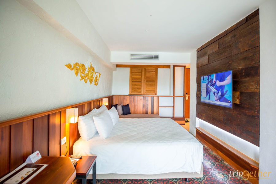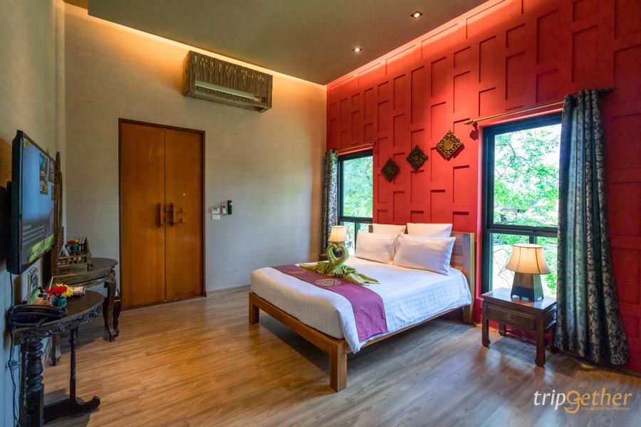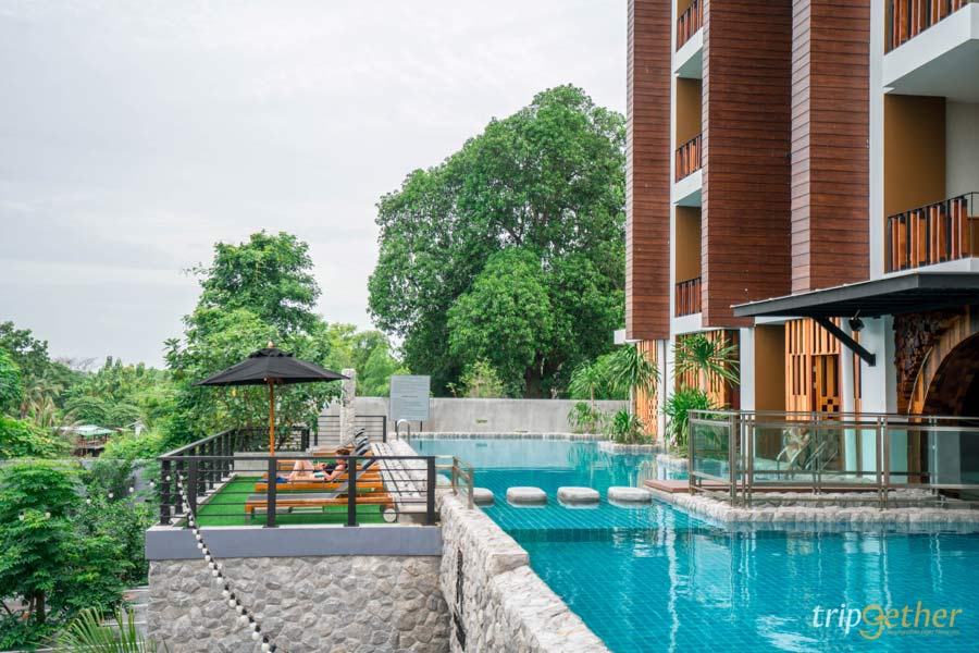 ถัดมาที่ นที เดอะ ริเวอร์ฟร้อนท์ (Natee The Riverfront Hotel) ที่พักสวยสไตล์ไทย ในตัวเมืองกาญจนบุรี ตั้งอยู่ริมแม่น้ำแคว ใกล้ชิดกับธรรมชาติ แถมใกล้กับสถานที่ท่องเที่ยวสำคัญๆ มากมาย มีห้องพักให้เลือก 3 แบบด้วยกัน โดยแต่ละห้องจะมีระเบียง อ่างจากุชชี่ สิ่งอำนวยความสะดวกต่างๆ ครบครันเลยล่ะ รวมถึงยังมีสระว่ายน้ำส่วนกลางขนาดใหญ่ให้ได้ว่ายเล่นกันเพลินๆ อีกด้วยนะ