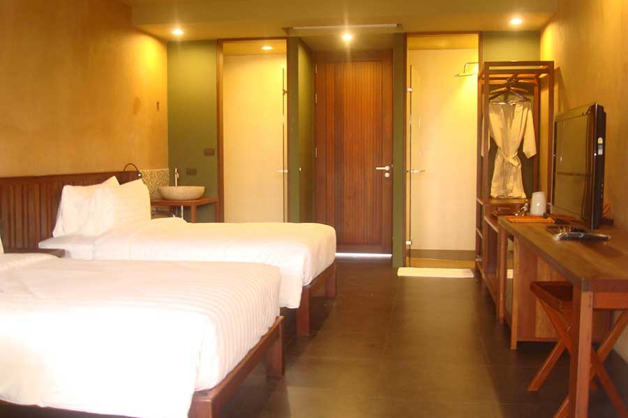 มาต่อกันที่ ไร่เลย์ วิลเลจ รีสอร์ท แอนด์ สปา ที่พักสวยบรรยากาศเงียบสงบคล้ายหมู่บ้านสมชื่อความเป็นวิลเลจ ที่นี่ถูกโอบล้อมด้วยสวนมะพร้าวและหน้าผาหินปูนที่ตั้งเด่นตระหง่า ตัวห้องพักจะมารูปแบบวิลล่าสไตล์ธรรมชาติ มีทั้งแบบหลังเดี่ยวแบบ Jacuzzy Villa, Family Suit และ Honeymoon Sweet หลังคามุงจาก ให้ฟีลบาหลีนิดๆ และแบบทาวเฮาส์ 2 ชั้น ที่ขนานกับสระว่ายน้ำเป็นแนวยาวชมวิวสระได้จากบนเตียง ภายในมาในโทนสีแบบเอิร์ธโทน ครบครันด้วยสิ่งอำนวยความสะดวกมากมาย นอกจากนี้ยังมีกิจกรรมให้เพลิดเพลินอีกเพียบ ทั้งห้องอาหาร คาเฟ่ และกิจกรรมทางน้ำสนุกๆ เอาใจสายแอดเวนเจอร์