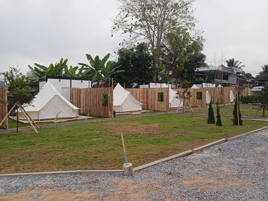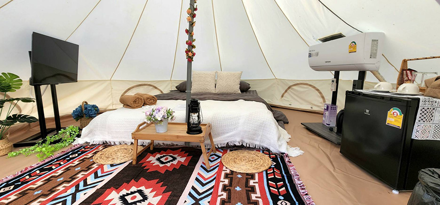 สายนอนเต็นท์ฟีลตั้งแคมป์เราขอแนะนำ Sangkhla Camping ที่พักสังขละบุรีสุดชิคแบบเต็นกระโจมสีขาวติดแอร์ มาพร้อมห้องน้ำในตัว เครื่องทำน้ำอุ่น และภายในเต็นท์ยังมีทั้งสิ่งอำนวยความสะดวกทั้งโทรทัศน์ ตู้เย็น กาน้ำร้อนพร้อมชุดกาแฟอีกด้วย สำหรับใครที่ต้องการตักบาตรยามเช้าที่สะพานมอญทางที่พักยังมีบริการเสริมเตรียมชุดตักบาตรและชุดมอญไม่ว่าจะของผู้หญิงหรือของผู้ชายก็มีพร้อม และแน่นอนว่า Sangkhla Camping นั้นตั้งอยู่ไม่ไกลจากสะพานมอญ สามารถเดินไปได้แบบสบายๆ สายคอนเทนต์คนไหนกำลังหาที่พักสวยๆ สังขละบุรีบอกเลยว่าที่ Sangkhla Camping เหมาะสุดๆ ในการทำคอนเทนต์อัปลงโซเชียล