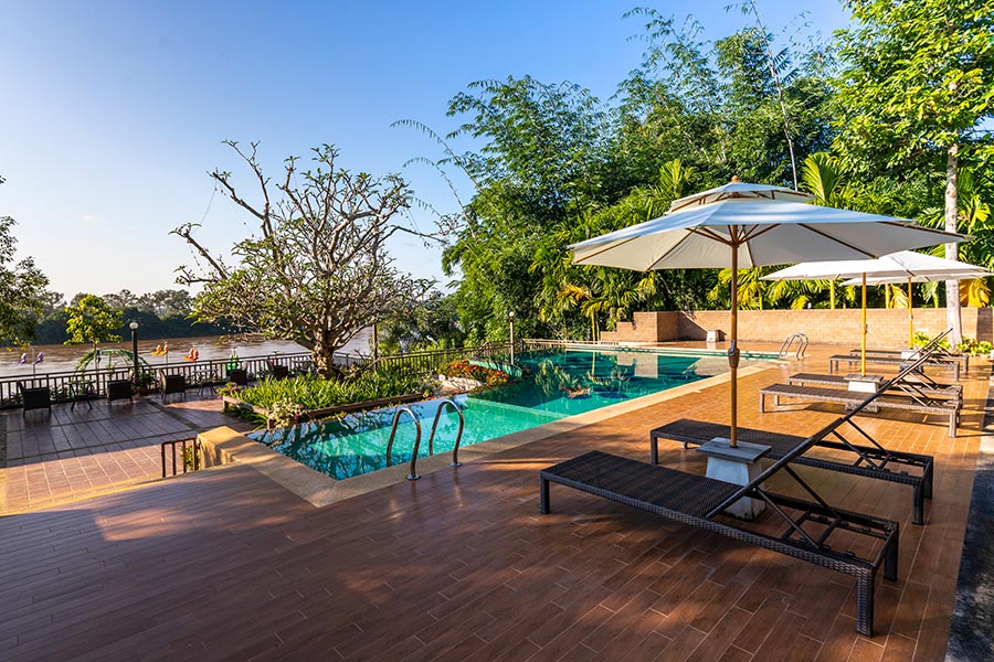 บ้านแซวการ์เด้น แอนด์ รีสอร์ท ที่พักริมแม่น้ำโขงที่อยู่ใกล้ชิดกับธรรมชาติอย่างแท้จริง บรรยากาศก็ชิลล์มาก เหมาะกับการมานอนพักผ่อนรับลมสบายๆ ส้กคืน และห้องพักที่จะมาแนะนำเป็นเต็นท์โดมใส หันหน้าเข้าหาแม่น้ำ และไฮไลท์คือช่วงเย็นที่พระอาทิตย์ใกล้ตก แสงสีส้มๆ สะท้อนกับผืนน้ำกลายเป็นสีส้มทอง การได้นอนมองดูวิวแบบนี้จากในห้องคือฟินมากๆ