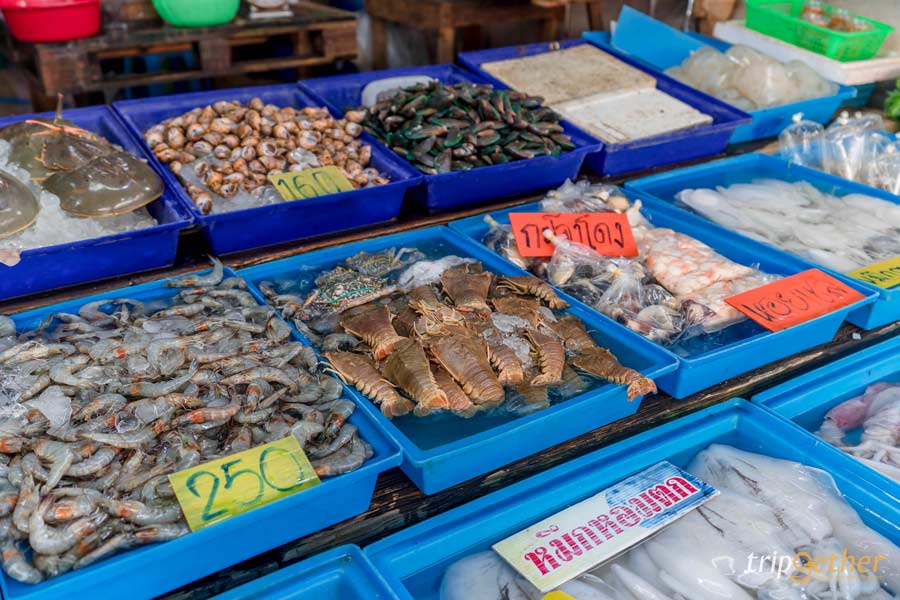 ตลาดแสมสาร ตลาดประมงพื้นบ้านของแสมสาร แหล่งรวมอาหารทะเลสดๆ จากทะเลหลากหลายชนิด ไม่ว่าจะเป็นกุ้ง หอย ปู ปลา หมึก กั้ง แมงดาทะเลเป็นๆ รวมไปถึงอาหารทะเลแห้ง เหมาะสำหรับเพื่อนๆ ที่เลือกที่พักแสมสารที่สามารถทำอาหาร ปิ้งย่างอาหารทะเลได้ สามารถแวะมาซื้ออาหารทะเลที่นี่ก่อนเข้าไปที่พัก หรือบางร้านมีบริการนำอาหารทะเลไปปรุงสุกให้ฟรีอีกด้วย ใครที่เตรียมปิ้งย่างริมทะเล อย่าลืมแวะมาเดินเลือกซื้อ เติมเสบียงอาหารทะเลสดๆ ที่นี่ได้เลย