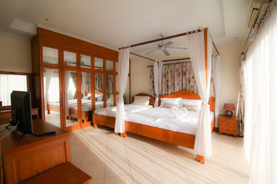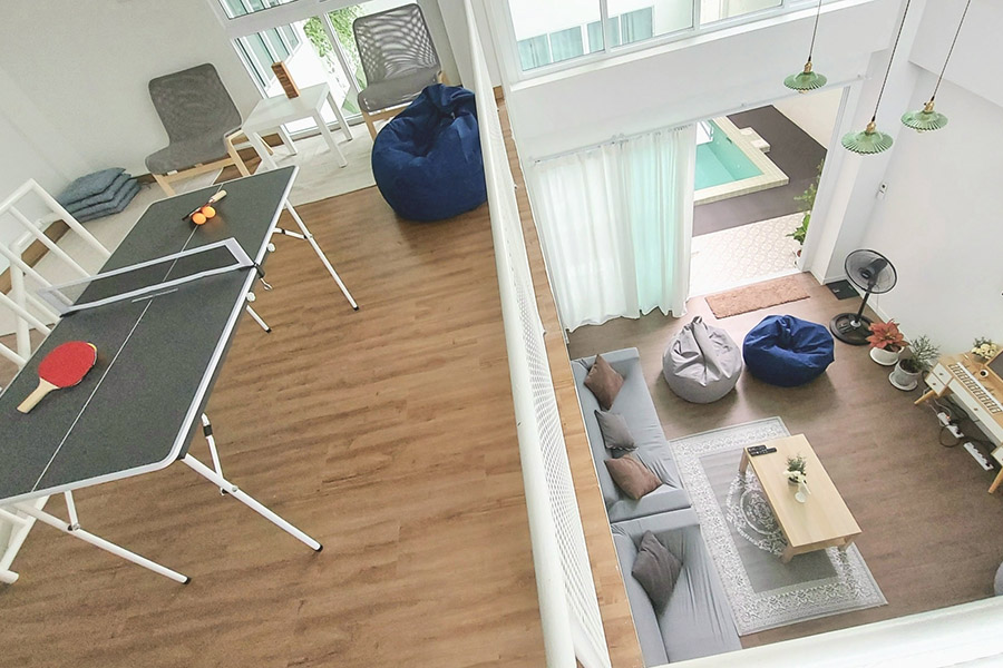 เดอะ เซเรนิตี้ รีสอร์ท พัทยา ที่พักแบบเหมาหลัง ขวัญใจของชาวคณะ เพราะมาพร้อมกับพื้นที่ใช้สอยที่กว้างขว้าง รองรับทุกกิจกรรมรื่นเริงที่จะเกิดขึ้น ตัวบ้านเป็นทรงโมเดิร์นทันสมัย เช่นเดียวกับภายในที่ตกแต่งมาอย่างเรียบง่าย แต่ครบทุกฟั่งก์ชั่น ทั้งห้องนอน 4 ห้อง ห้องรับแขก ห้องครัว ห้องรับประทานอาหาร ระเบียงพักผ่อน และที่ขาดไม่ได้ สระว่ายน้ำขนาดใหญ่ บอกเลยว่าเพื่อนๆ สามารถมาพักผ่อนแบบจัดเต็มได้เลย เป็นที่พักอีก 1 ที่ที่น่าสนใจสำหรับชาวคณะ
