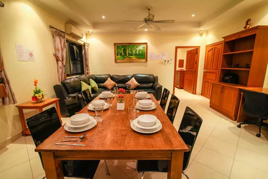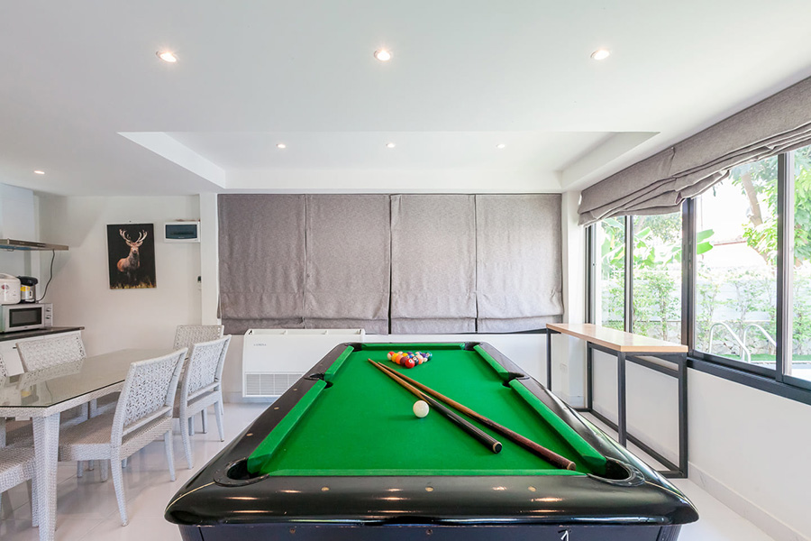 เซฟเฮ้าส์ พูลวิลล่าพัทยา บ้านพักหลังใหญ่ที่ตอบโจทย์ผู้ที่ต้องการพักผ่อนแบบเป็นครอบครัว หรือจะชวนเพื่อนๆ มาปาร์ตี้ริมสระน้ำกันก็ได้ ที่สำคัญคืออยู่ไม่ไกลจากสถานที่ท่องเที่ยวในพัทยา สามารถซื้ออาหารทะเลมาปิ้งย่างกันได้ตามชอบ สไตล์บ้านพักเป็นบ้านชั้นเดียว 4 ห้องนอน 3 ห้องน้ำ สามารถเข้าพักได้สูงสุดถึง 15 คน มีสระน้ำเกลือขนาดใหญ่ ห่วงยางแฟนซี ชุดคาราโอเกะ รวมไปถึงอุปกรณ์อำนวยความสะดวกอื่นๆ อีกเพียบ