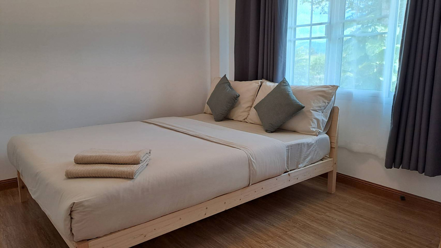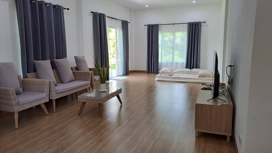 Raiyaa Farmstay & Camping ฟาร์มสเตย์สุดชิลล์ที่อยู่ไม่ใกล้กรุงเทพฯ ขับรถมาแป๊บเดียวก็ได้สูดอากาศบริสุทธิ์และเสพความกรีนกับแบบเต็มๆ สำหรับบ้านพักที่นี่จะเป็นแบบเหมาหลัง ก็คือรองรับได้เพียง 1 กลุ่มเท่านั้น เรียกได้ว่ามีความเป็นส่วนตัวสุดๆ เหมาะกับแก๊งค์เพื่อนหรือครอบครัวที่อยากมาจัดปาร์ตี้ ใช้เวลาร่วมกัน ในบ้านจะแบ่งเป็น 2 ห้องนอน 1 ห้องน้ำ และพื้นที่ห้องนั่งเล่นกว้างๆ นอกจากนี้ยังมีสวนหน้าบ้านสำหรับเป็นพื้นที่กิจกรรม ไม่ว่าจะเป็นการก่อกองไฟแคมป์ปิ้ง ทำปิ้งย่าง นั่งดูหนังกลางแปลง หรือดูดาวยามค่ำคืน และที่สำคัญยังมีผลไม้ตามฤดูกาลที่สามารถเด็ดกินกันได้แบบฟรีๆ ด้วย