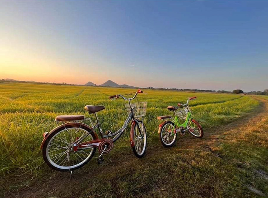 ทุ่งนาป่าสวนฟาร์มสเตย์ มาพร้อมกับวิวท้องนาเหลืองอร่ามสุดสายตา ใครคิดถึงบรรยากาศชนบทบ้านๆ มีความเป็นกันเอง และความเงียบสงบ บอกเลยที่นี่ตอบโจทย์มาก อีกทั้งบ้านพักยังมีเพียง 2 หลังเท่านั้น ก็คือบ้านดอกไม้และปลายนา โดยทั้ง 2 หลังนี้มีครบสิ่งอำนวยความสะดวก รวมถึงระเบียงให้ได้นั่งรับลมกับแบบชิลล์ๆ ส่วนกิจกรรมในที่พักก็มีให้เลือกหลายแนว จะสายชิลล์หรือสายแอดเวนเจอร์ก็มีหมด ไม่ว่าจะเป็นปั่นจักรยาน ขับ ATV พายเรือ เดินชมพืชผลการเกษตร เรียกได้ว่าเป็นฟาร์มสเตย์ที่เหมาะกับการพาเพื่อนหรือชวนครอบครัวมานอนชาร์จพลังกันสักคืนมาก