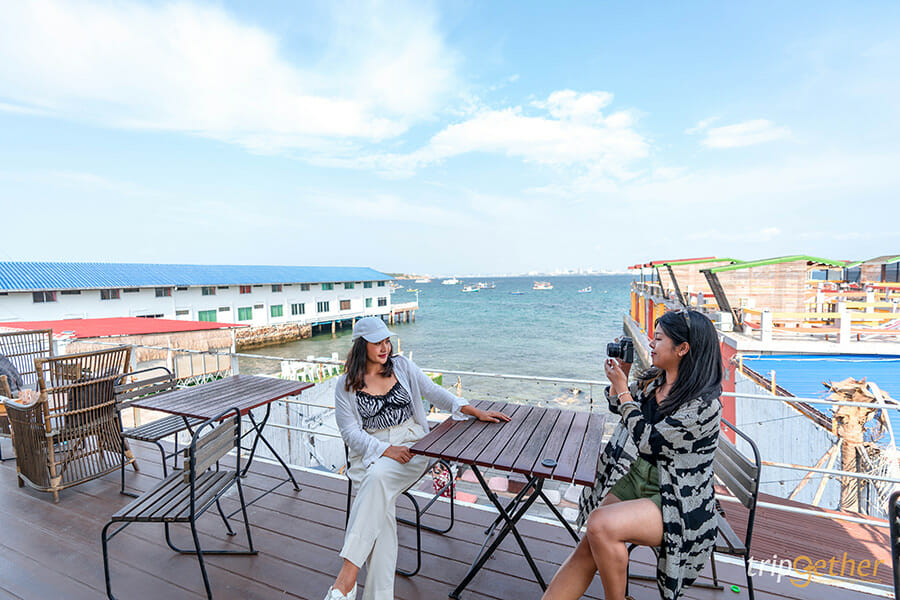Maharak Cafe คาเฟ่ชื่อดังของเกาะล้านที่ตกแต่งอย่างชิคๆ ด้วยโทนสีน้ำตาลขาว บวกกับตัวร้านติดทะเล ทำให้บรรยากาศร้านดูชิลล์ เหมาะกับการมานั่งเช็คอินหรือถ่ายรูปสวยๆ สำหรับที่นั่งแบ่งออกเป็นโซนอินดอร์และเอาท์ดอร์ อินดอร์เป็นห้องแอร์ 2 ชั้น พร้อมกับกระจกบานใหญ่ เห็นวิวท้องทะเลแบบกว้างๆ ส่วนใครชอบนั่งรับลมสบายๆ ก็ต้องมาระเบียงโซนเอาท์ดอร์ บอกเลยว่าชิลล์จริงๆ ถ้ายิ่งมาช่วงเย็นๆ ที่ท้องฟ้าเปลี่ยนสีก็ยิ่งฟิน ส่วนเมนูที่ทางร้านเสิร์ฟไม่ได้มีแค่เครื่องดื่มขนมแนวคาเฟ่ แต่ยังมีอาหารซีฟู้ดแซ่บๆ ด้วย และที่แนะนำมาต้องสั่งก็มีปูผัดผงกะหรี่, น้ำพริกกุ้งสด, ต้มหมึกน้ำดำ และต้มยำปลาทู บอกเลยว่าเป็นร้านที่ครบทุกอย่างจริง
