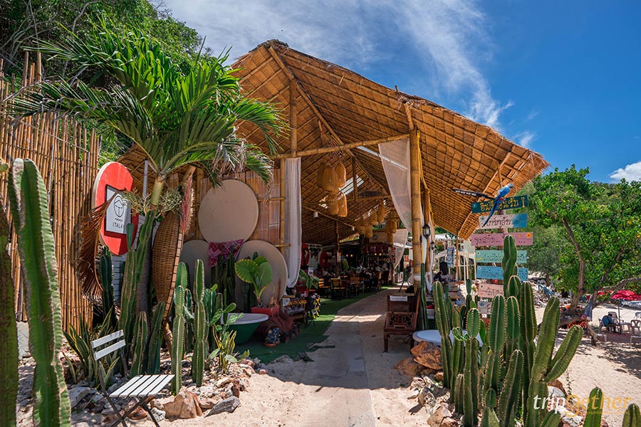 เทียนทะเล ร้านอาหารเกาะล้านที่เปิดมานานกว่า 30 ปี ตั้งอยู่บนหาดเทียนซึ่งเป็นหาดที่เงียบสงบ น้ำใส หาดทรายละเอียด ทำให้บรรยากาศในร้านสบายๆ กินข้าวท่ามกลางลมทะเล บวกกับการตกแต่งที่เน้นวัสดุธรรมชาติสีน้ำตาลเป็นหลัง ก็ช่วยให้ร้านดูอบอุ่นและเข้ากับความเป็นทะเล ส่วนเมนูของทางร้านมีให้เลือกมากมาย แต่ละเมนูน่ากินและจัดเต็มอาหารทะเลสุดๆ อย่างเมนูที่ใครมาต้องสั่งก็คือ เซ็ตซีฟู้ด จัดเต็มทั้งกุ้ง หอย ปู ปลา แถมยังเสิร์ฟมาพร้อมกับผลไม้สด บอกเลยว่าเซ็ตนี้คือคุ้มมากๆ นอกจากนี้ยังมีเมนูข้าวผัดทะเลจาน หมึกชุบแป้งทอด และต้มยำทะเลน้ำข้น อาหารทางร้านรสชาติเข้มข้นจัดจ้าน ยิ่งถ้าได้จิ้มคู่กับซีฟู้ดแซ่บๆ อร่อยเข้ากันสุดๆ