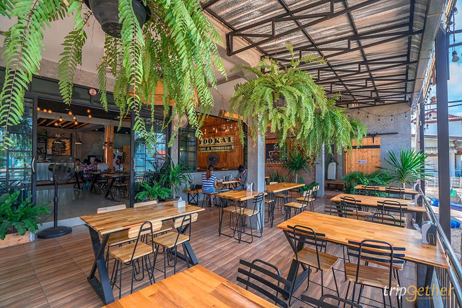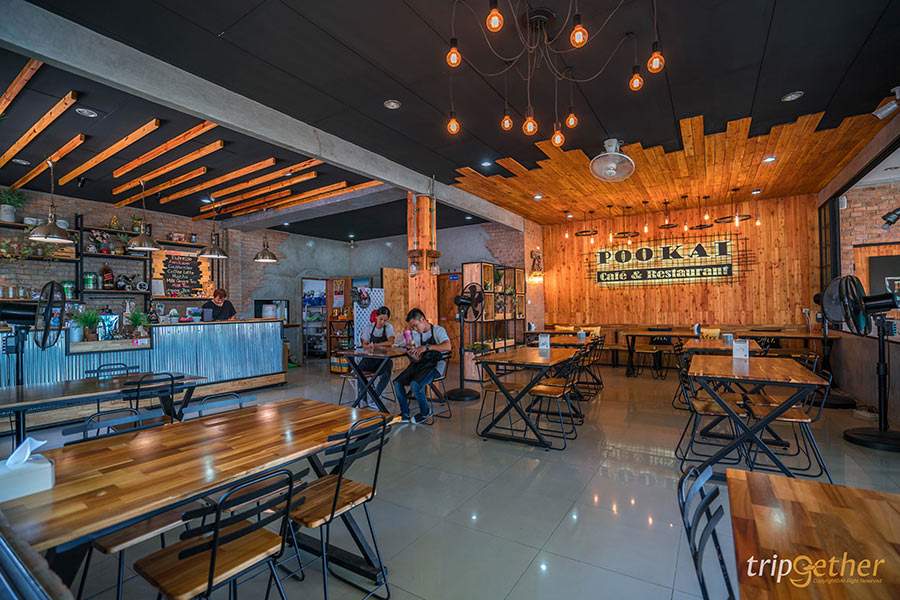 Pookai Cafe & Restaurant ร้านอาหารโลเคชั่นดี เดินทางง่ายๆ ติดศาลเจ้าแม่ชีวิตใกล้ท่าเรือหน้าบ้าน เรียกได้ว่าใครลงเรือมาเหนื่อยๆ ก็แวะมาพักผ่อนหรือหาอะไรกินที่ร้านนี้ได้เลย โซนนั่งมีทั้งอินดอร์และเอาท์ดอร์ ตัวร้านเปิดกว้าง โล่งโปร่ง เน้นรับลมธรรมชาติ สำหรับร้านปูไก่เป็นทั้งร้านคาเฟ่และร้านอาหาร เมนูมีให้เลือกมากมายทั้งเครื่องดื่มและของคาว เริ่มจากเครื่องดื่มที่มีให้เลือกมากมาย ไม่ว่าเป็นกาแฟ ชา สมูทตี้ หรือจะกินให้อิ่มท้องก็มีข้าวผัดปู ปลากะพงทอดน้ำปลา ปลาหมึกผัดพริกเผา ต้มยำทะเล และบอกเลยว่าแม้ร้านจะดูเป็นแนวคาเฟ่ แต่ซีฟู้ดรสจัดจ้าน วัตถุดิบคัดมาแบบเน้นๆ สดใหม่ เรียกได้ว่าเป็นร้านอาหารเกาะล้านที่ต้องโน้ตไว้เลย