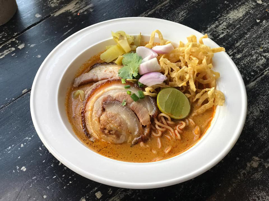 ร้านเจียงฮาย นู้ดเดิล แกลลอรี่ แอนด์ มอร์ ร้านอาหารเหนือสุดครีเอทที่มีเอกลักษณ์คืออาหารเหนือฟิวชั่นโดยเฉพาะเมนูข้าวซอยและน้ำเงี้ยวที่สามารถเลือกสร้างสรรค์ได้ตามสไตล์เราเอง โดยเลือกได้ตั้งแต่เส้น ที่มีทั้งเส้นอุด้ง เส้นโซบะ เส้นเซี่ยงไฮ้ หรือแม้แต่เส้นบุก และท็อปปิ้งก็มีให้เลือกเยอะมากไม่แพ้กัน อย่างเบคอนห่อชีส หมูชาชู หรือหน้าเนื้อโคขุน บอกเลยว่าจุใจสุดๆ นอกจากนี้เมนูอาหารเหนือยอดฮิตตลอดกาลอื่นๆ ก็มีเหมือนกันนะ ไม่ว่าจะเป็นน้ำพริกหนุ่ม แกงฮังเล และไส้อั่ว มาร้านนี้รับรองแฮปปี้สุดๆ