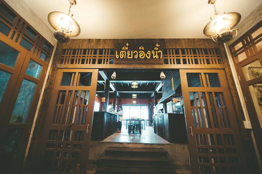 ต่อกันอีกหนึ่งร้านริมน้ำบรรยากาศชิลล์ เตี๋ยวอิงน้ำ ฟังชื่อแล้วหลายคนคงเดาว่าเป็นร้านก๋วยเตี๋ยวแน่เลย แต่ขอบอกเลยว่าผิด ร้านนี้มากมายด้วยเมนูสไตล์ไทย ที่โดดเด่นด้วยเมนูผัดไทย ที่ครีเอทเมนูได้สุดแปลกใหม่ มีทั้ง ผัดไทยต้มยำกุ้งสด ผัดไทยกระเพรา รวมถึง ผัดไทยปลาร้า+ปลาดุกฟู และยังมีเมนูของหวานอย่าง ข้าวเหนียวมะม่วงให้ตบท้าย ส่วนบรรยากาศชิลล์ไม่แพ้กัน เป็นเรือนไม้หลังใหญ่ มีระเบียงให้ชมวิถีชีวิตแบบ 180 องศา แอบกระซิบว่าคนแน่นตลอดทั้งวันต้องรีบมาเผื่อเวลากันไว้เลย