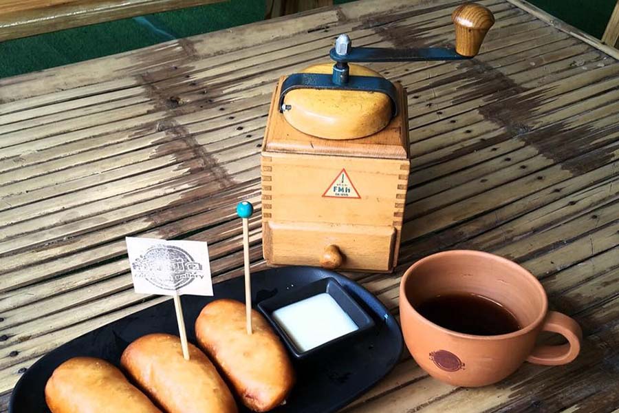 ต่อกันที่อีกหนึ่งร้านกาแฟเล็กๆ ในเกาะเกร็ด กาแฟคั่วมือ คอฟฟี่ แอนด์ แกลอรี่ ที่นี่ถึงจะเป็นร้านเล็กๆ แต่โดดเด่นด้วยความใส่ใจ ที่เรียกว่าทำกันเองเกือบทุกขั้นตอน ตัวร้านบ้านบลอคเล็กๆ ขนาดสองคูหา ซึ่งไม่ว่าใครมาเกาะเกร็ดก็ต้องผ่านอย่างแน่นอน ภายในตกแต่งได้อย่างน่ารักเน้นวัสดุไม้ มีบาร์กลิ่นหอมกาแฟและมุมที่นั่งประมาณ 5-6 โต๊ะ ส่วนเมนูจะเน้นเครื่องดื่มเป็นหลัก แต่ก็มีเมนูให้รองท้องกันอย่าง หมั่นโถว ของหวาน และที่สำคัญยังมากมายด้วยไอเท็มอาร์ตๆ ที่สามารถซื้อเป็นของฝากติดไม้ติดมือกลับไปได้ด้วย
