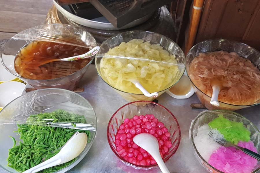 ปิดท้ายกันที่ ร้านขนมหวานบ้านป้าสุน ซึ่งเกาะเกร็ดเป็นอีกโซนที่มากมายด้วยร้านขนมไทยมากมาย และส่วนมากจะเป็นแบบซื้อกลับไม่มีโต๊ะให้นั่งทาน แต่ไม่ใช่ที่บ้านป้าสุน ตัวร้านเป็นบ้านเรือนไม้หลังเก่า ที่ยังคงสเน่ห์แบบโบราณได้ครบ มีมุมให้เลือกนั่งมากมาย จะนั่งโต๊ะหรือนั่งบนเรือนแบบโต๊ะญี่ปุ่นก็ได้บรรยากาศ ส่วนเมนูของหวานเด็ดๆ ก็ต้องยกให้ ลอดช่อง กระท้อนลอยแก้ว และทับทิมกรอบ ที่ปรุงกันในแบบสูตรดั้งเดิม รสชาติหอม หวาน มัน แถมยังราคาแสนถูกเริ่มต้นที่ 25 บาทเท่านั้น