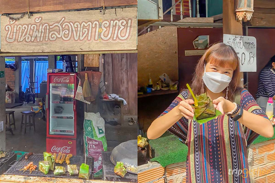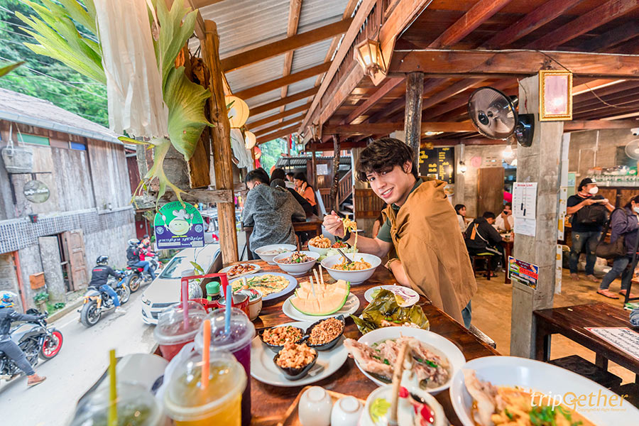 เริ่มเช็คลิสต์แรกกันที่ ข้าวซอยกลอยใจ ร้านอาหารเหนือประจำหมู่บ้านแม่กำปองที่ใครๆ ต้องมาแวะลิ้มชิมรสความอร่อยของข้าวซอยสูตรเด็ด ไม่ว่าจะเป็นข้าวซอยหมู ข้าวซอยไก่ ไส้อั่วสมุนไพร ก๋วยเตี๋ยวหมุ ก๋วยเตี๋ยวเนื้อ ขนมจีนน้ำเงี้ยว บอกเลยว่าอร่อยทุกเมนู ตัวร้านตั้งใจกลางหมู่บ้านเลยเป็นบ้านไม้กึ่งปูน 3 ชั้น เลือกนั่งได้ตามสะดวก มาถึงแม่กำปองทั้งที่ก็ต้องแวะกินของอร่อยๆ ที่ข้าวซอยกลอยใจกันนะ