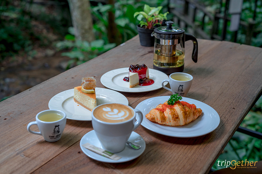 มาเช็คลิสต์กันต่อที่ เท็ดดู้ คอฟฟี่ คาเฟ่กลางป่าฟีลดี นั่งชิลล์ริมน้ำตก ถ่ายรูปกับไฮไลท์อย่างสะพานแขวนเหนือยอดไม้กลางป่าที่ทอดยาว แถมเมนูเครื่องดื่มและเบเกอรี่อร่อยๆ มากมายให้เลือก ไม่ว่าจะเป็น สเปเชียลดัชโกโก้ เทดดู้คาราเทลมอคค่า ครัวซองต์อัลมอนด์ที่กรอบนอกนุ่มใน หอมกลิ่นเนย บอกเลยว่าสายขนมต้องชอบแน่นอน และที่สำคัญที่ถ้าใครมาจังหวะดีๆ จะได้เจอน้องเท้ดดู้แมวเซเลบประจำร้านออกมาโชว์ความน่ารักให้เราเห็นกันด้วย ถ้าไม่อยากพลาดคาเฟ่ดีๆ แบบนี้อย่าลืมมาเช็คอินกันด้วยนะ