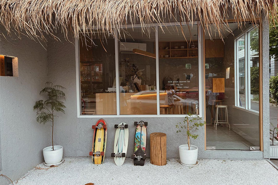 KATE Artisan Japanese Tea คาเฟ่เล็กๆ น่ารักสไตล์ญี่ปุ่น ไม่ใช่แค่สไตล์ร้านที่มีกลิ่นอายญี่ปุ่น เพราะร้านขายเครื่องดื่ม Matcha Japanese Tea ชาเขียวแท้ๆ ที่ส่งตรงจากญี่ปุ่น Matcha high grade สุดพรีเมี่ยมที่ทำให้คุณได้สัมผัสรสชาติชาเขียวแท้ๆ ให้โทนนัวๆ ดื่มง่ายและยังมีหลายสายพันธุ์ให้ได้ลิ้มลอง มีระดับความเข้มให้เลือกด้วย และรับรองว่าเข้มแค่ไหนก็ไม่ขม ขอแนะเมนูสุดฮิตที่หลายคนชื่นชอบคือ The Three Musketeers, Peach Matcha, Dirty Matcha, Homemade Caramel Matcha ลองเมนูเครื่องดื่มแล้วก็อยากให้สั่งเมนูหวานๆ มากินคู่กัน เพราะขนมของทางร้านก็น่ากินมากๆ มีเมนูดังอย่าง KATE Cake Matcha, Double Matcha Mousse Cake ให้คนรักชาเขียวได้ฟินกันทั้งเครื่องดื่มและขนม