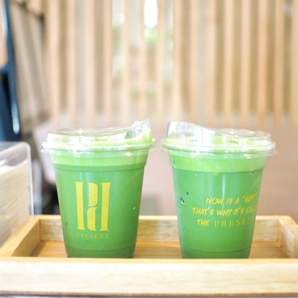 Present BKK กับคอนเซ็ปต์ร้านสุดน่ารัก “เพราะปัจจุบัน (adj.) คือของขวัญ (n.)” ร้านในแบบมินิมอลสไตล์ญี่ปุ่นพร้อมผสมผสานเอกลักษณ์ความเป็นไทยเข้าไปด้วยไม่ได้ทำให้ดูแตกต่าง แถมยังเข้ากันมากๆ ด้วย ชาเขียวของทางร้านคัดสรรชาจากวัตถุดิบคุณภาพพรีเมี่ยมเกรดพิธีชงชาหลากหลายสายพันธุ์จากประเทศญี่ปุ่น เพื่อสรรสร้างเครื่องดื่ม ให้ทุกรสสัมผัสเป็น “ของขวัญ ณ ปัจจุบัน” ตามคอนเซ็ปต์ร้านที่แสนอบอุ่นนี้ ขอบอกว่าใครเป็นสายชาเขียวแบบต้นตำหรับชื่นชอบรสชาติดั้งเดิมต้องมาลองรสชาตินุ่ม หอม กลมกล่อม เมนูแนะนำของร้านก็จะมี Believe มัทฉะนมถั่วเหลืองน้ำผึ้ง, Good luck มัทฉะส้มโอลาเวนเดอร์, Harmony มัทฉะโฮจิฉะนม, Clear mind มัทฉะใส ขอบอกว่าชื่อแต่ละเมนูของร้านจะมีความหมายเป็นข้อคิดเชิงบวกด้วย เก๋สุดๆ แต่ถ้าใครไม่ใช่สายนมวัวทางร้านก็มีเมนู มัทฉะนมข้าวโอ๊ต มัทฉะนมถั่วเหลืองน้ำผึ้ง เป็นทางเลือกด้วย ไม่ได้มีแค่เครื่องดื่ม Present BKK ยังมีเมนูเบเกอรี่ ไอศกรีมด้วยนะ