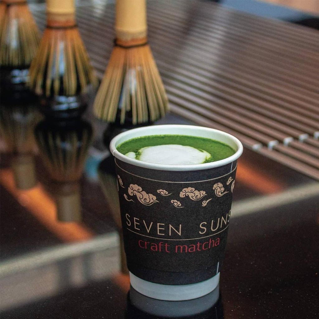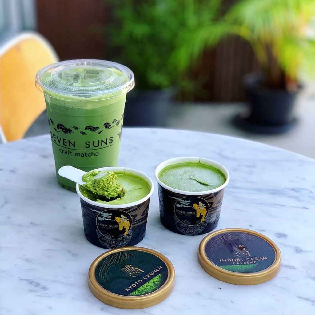 Seven Suns ร้าน Craft Matcha ที่มีชาเขียวสุดพรีเมี่ยม ทางร้านคัดสรรชามาอย่างดีใช้ใบชาจากเมือง Uji ประเทศญี่ปุ่น เมืองที่ขึ้นชื่อว่าเป็นแหล่งปลูกชาเขียวที่ดีที่สุดในญี่ปุ่น ใบชารสชาติดี กลมกล่อม กลิ่นหอม ไม่ขม การันตีความพรีเมี่ยมของชาเขียวจาก Seven Suns โดยรับการโหวตจาก Time Out (สื่อไลฟ์สไตล์ที่ได้รับความนิยมสูงสุดทั่วทุกมุมโลก) ว่าเป็นร้านมัทฉะลาเต้ที่ดีที่สุดในกรุงเทพ (Best Matcha Latte in Bangkok) ที่สำคัญยังมีนมให้เลือกใส่หลายแบบ สำหรับคนที่แพ้นมวัว ก็สามารถเลือกใส่เป็นนมถั่วเหลือง นม อัลมอนด์ หรือนมถั่วพิสทาชิโอแทนได้ หรือถ้าใครไม่ชอบเมนูนมๆ ก็มีเมนูชาเขียวอื่นๆ ให้เลือก และทางร้านมีระดับความหวานให้เลือกตามชอบอีกด้วย ขอบอกว่าใครเป็นสายชาเขียวต้องห้ามพลาด