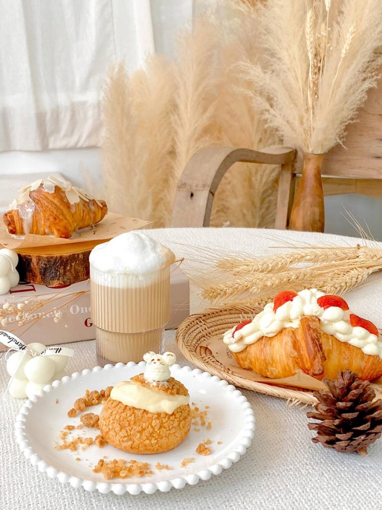 คาเฟ่สไตล์มินิมอลคุมโทนสีครีมที่อบอวลไปด้วยกลิ่นหอมของขนมอบ ความสุขและความรักในการทำขนมของเจ้าของร้านถูกส่งผ่านรสชาติที่แต่ละวันจะสร้างสรรค์เมนูต่างกันออกไป ร้านเล็กๆ แห่งนี้มีผู้คนที่หลงใหลในเสน่ห์ ความประทับใจ และความสุขเมื่อได้ลิ้มลองขนมที่ใส่ความตั้งใจลงไปแวะเวียนมาอยู่เสมอ เมื่อเดินเข้าไปในร้านจะพบกับผนังที่ออกแบบไว้เป็นรูปทรงต่างๆ เหมาะกับการถือจานขนนม หรือแก้วเครื่องดื่มแล้วถ่ายรูปเช็คอินสุดๆ นอกจากนี้หากเดินตรงไปจนสุดหลังร้านก็จะพบกับมุมที่นั่งเปิดโล่ง เหมาะกับใครก็ต้องการความเป็นส่วนตัวและอากาศแบบสบายๆ