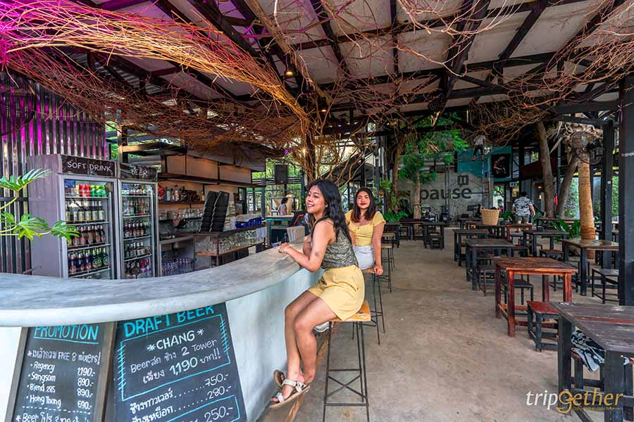 พอส บาร์ บาร์บรรยากาศชิลล์ที่ตั้งอยู่หน้าที่พัก Pause Resort & Bar ที่พร้อมต้อนรับนักท่องเที่ยวด้วยแสงสีที่ตกแต่งด้วยไฟนีออนอย่างสวยงาม ภายในตกแต่งมาในสไตล์โมเดิร์นลอฟท์ ที่เลือกใช้สีโทนมืดให้เข้ากับบรรยากาศยามค่ำคืน ที่นี่มีบริการทั้งบาร์ และอาหารหลากหลายเมนูให้เลือกรับประทานเช่น มาม่าต้มยำทะเลหม้อไฟ ข้าวผัดเบค่อน กุ้งแช่น้ำปลา และปีกไก่ทอด ด้านเครื่องดื่มจะเป็น Brazillian Sapphire และ Tipsy Spritzer แต่ละเมนูบอกเลยว่าเด็ด! เหมาะจะมาจิบเครื่องดื่มและฟังดนตรีสดที่พร้อมจะขับกล่อมทุกคนให้เพลิดเพลินตลอดทั้งค่ำคืน