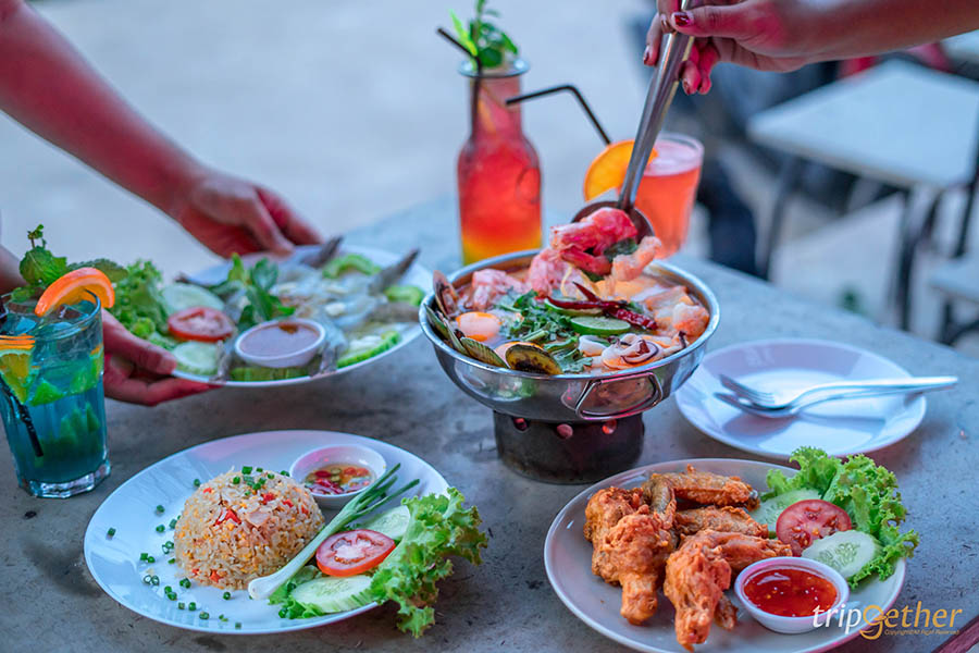 มิธ เกาะล้าน รีสอร์ท บาร์ แอนด์ บิสโทร บาร์สวยของที่พักสุดพิเศษอย่าง มิธ เกาะล้าน รีสอร์ท บาร์ แอนด์ บิสโทร เป็นหนึ่งในโซนพักผ่อนที่ออกแบบและตกแต่งตามคอนเซ็ป The place of secret ที่นี่จึงดูเป็นบาร์ลับๆ ที่แฝงไปด้วยสวยงามของการตกแต่งสไตล์บาหลีที่ผสมผสานความทันสมัยได้อย่างลงตัวและมีเสน่ห์ รวมถึงมีที่นั่งกลางน้ำที่ถือเป็นไฮไลท์เด็ดของที่นี่ สามารถมองเห็นวิวทะเลแบบพาโนราม่า บอกเลยว่าสวยจนต้องหยิบมือถือขึ้นมาอัพสตอรี่ ในส่วนของเมนูแนะนำจะเป็น ต้มยำกุ้งแม่น้ำ, ปอเปี๊ยะผักโขมชีส, เนื้อย่างวาซาบิสด, มัสมั่นไก่ และปลากะพงแดงทอดน้ำปลา ทุกเมนูถูกรังสรรค์ออกมาอย่างตั้งใจ ทั้งความสวยงามและรสชาติของอาหาร ใครกำลังแพลนมาเที่ยวเกาะล้าน ที่นี่ถือเป็นตัวเลือกอันดับต้นๆ ที่ดี เพราะมีทั้งที่พักและร้านอาหาร มาที่เดียวได้ถึง 2 ฟังก์ชั่น