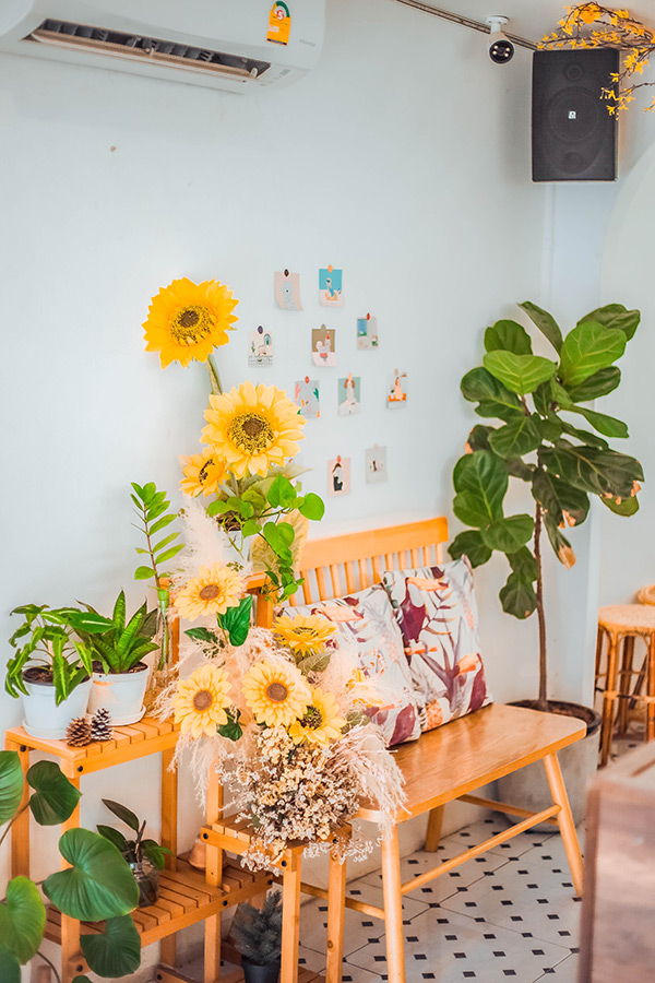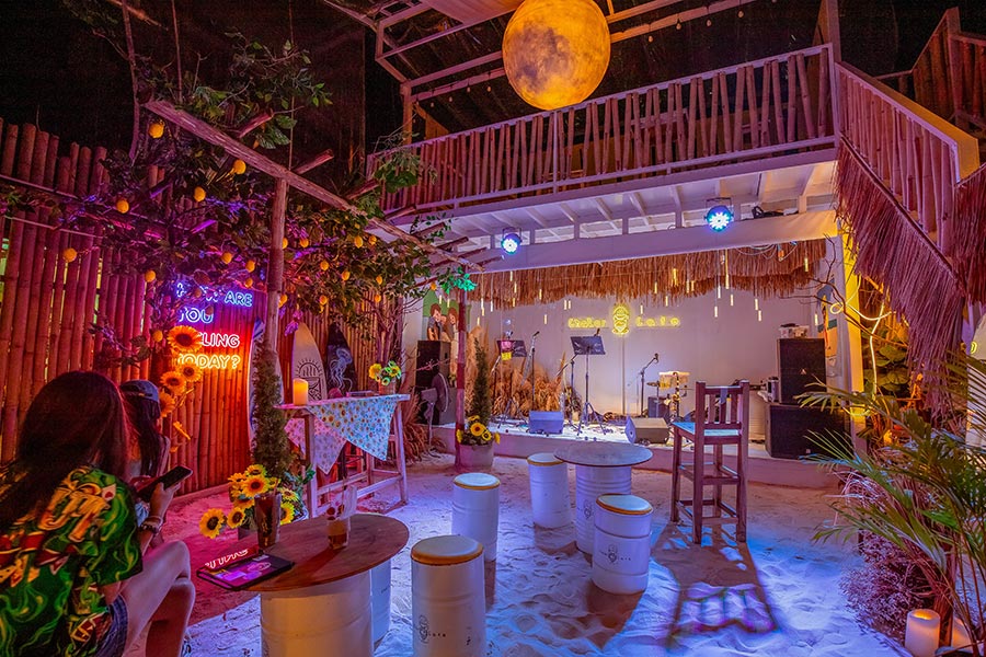 ชะลอคาเฟ่ คาเฟ่สุดคิ้วท์ใจกลางเกาะล้าน มาพร้อมกับการตกแต่งสไตล์มินิมอลที่ผสมผสานวัสดุธรรมชาติได้อย่างลงตัว ภายในร้านแบ่งเป็น 2 โซน คือโซนห้องแอร์และโซนเอ้าท์ดอร์ โซนห้องแอร์เป็นห้องสีขาวสะอาดตา ตกแต่งด้วยเฟอร์นิเจอร์ไม้และกระถางต้นไม้นานาพันธุ์ บรรยากาศภายในร้านเลยดูเย็นสบายน่านั่งขึ้นไปอีก ธีมการตกแต่งของร้านจะเปลี่ยนตลอดทั้งปี และในช่วงนี้จะเป็นธีมทานตะวัน ที่ทั้งร้านจะมีการนำดอกทานตัวันมาตกแต่งไว้ตามมุมต่างๆ ของร้าน ส่วนโซนเอ้าท์ดอร์จะเป็นโซนรับลมที่จำลองที่นั่งบนชายหาดและแคมป์ปิ้งมาไว้อย่างน่ารัก จุดนี้ถือเป็นมุมไฮไลท์ที่หลายๆ คนเลือกจะมาถ่ายรูปและเช็คอิน ด้านเครื่องดื่มและเบเกอรี่จะเป็นแบบโฮมเมด โดยมีเมนูแนะนำคือ ชะลอละมุน ชะลอคอฟฟี่ บราวนี่มิ้ลค์ มะม่วงเสาวรสซาโด บอกเลยว่ารสชาติละมุนลิ้นมากๆ นอกจากนี้ในเวลาช่วงเย็น ที่นี่จะเปลี่ยนจากคาเฟ่สุดคิ้วท์ เป็นบาร์สุดชิลล์ที่ชื่อ MoonNight เหมือนยกบรรยากาศริมทะเลและเสียงดนตรีมาไว้ที่นี่ได้อย่างลงตัว