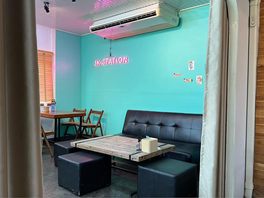 JK Station คาเฟ่สุโขทัยดีไซน์สะดุดและมีเอกลักษณ์ด้วยรถไฟเก่าที่นำมาดัดแปลงให้เป็นโซนเอาท์ดอร์ที่นั่งและจุดถ่ายรูปเช็คอินสุดชิคของร้าน หรือใครชอบนั่งชิลล์แบบเย็นๆ ทางร้านก็มีโซนห้องแอร์ที่อยู่โซนเดียวกับเคาเตอร์สั่งเครื่องดื่ม อาหาร และเบเกอรี่อีกด้วย ในส่วนของเมนูทางร้านมีทั้งกาแฟ คราฟโซดา อาหาร เบเกอรี่โฮมเมด และไอศกรีม ใครแวะมาเที่ยวหรือทำธุระสุโขทัยแล้วมองหาร้านนั่งชิลล์จิบกาแฟ กินข้าว ชิมขนมแสนอร่อย อย่าลืมมาที่ JK Station
