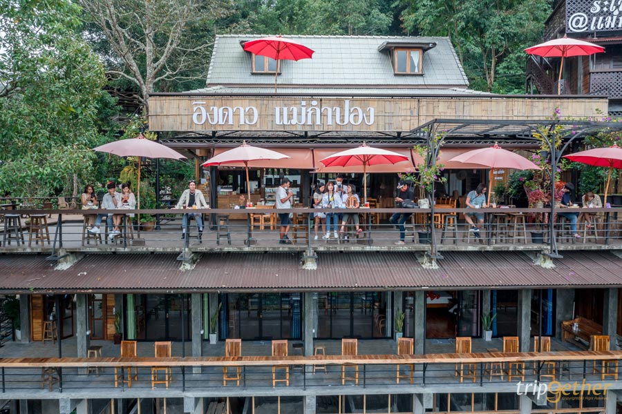 อิงดาว แม่กำปอง คาเฟ่ที่จะเห็นภาพหมู่บ้านแม่กำปองได้ทั้งหมู่บ้านและวิวภูเขา ไฮไลท์ของคาเฟ่ที่นี่คือ เมนูกาแฟ ที่ทางร้านปลูกเองและใส่ใจทุกขั้นตอนในการผลิตเครื่องดื่ม คอกาแฟต้องห้ามพลาดแวะมาลองชิมกันได้ ตัวร้านจะเป็น 2 ชั้น มีที่นั่งให้เลือกมากมายได้ชมวิวทิวเขาแน่นอน แถมดื่มกาแฟไปพร้อมกับดื่มด่ำธรรมชาติฟินสุดๆ หรือจะมานั่งชิลล์ๆ ถ่ายรูปเก็บบรรยากาศเอาไว้ลงโซเชียลก็ดีมาก ขนมเบเกอรี่และเครื่องดื่มมีให้เลือกหลายเมนู ใครมาเที่ยวแม่กำปองลองแวะมาพักผ่อนชมบรรยากาศกันได้ รับรองถูกใจสายคาเฟ่สุดๆ