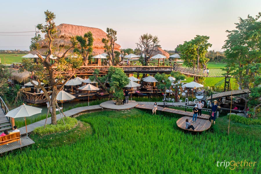 จังเกิ้ล เดอ คาเฟ่ คาเฟ่ที่อยู่บนทางขึ้นม่อนแจ่ม ร้านตั้งอยู่บนเนินเขาท่ามกลางธรรมชาติ ที่มีต้นไม้เขียวขจีและน้ำตกที่มีเสียงน้ำไหลที่ผ่อนคลายสุดๆ แถมยังมีที่นั่งใต้ต้นไม้ให้นั่งรับลมกันอีกด้วย ลูกค้าสามารถเลือกที่นั่งได้ตามสบายทางร้านมีทั้งโซน Indoor และ Outdoor และที่นี่ยังมีเครื่องดื่มและเบเกอรี่ เข้ากับบรรยากาศสุดๆ พร้อมกับโซนฮิตของร้านที่พลาดไม่ได้อย่างเปลตาข่ายมุมสุดชิลล์ ออกมานั่งฟังเสียงน้ำตกเพลินๆ ที่ร้านมีหลายมุมให้เลือกถ่ายรูปด้วย ใครที่ชอบถ่ายรูปบอกเลยได้รูปเยอะถูกใจแน่นอน และทางร้านยังมีกิจกรรมให้ทำด้วย ใครสนใจเป็นอีกหนึ่งคาเฟ่ที่แนะนำมากๆ