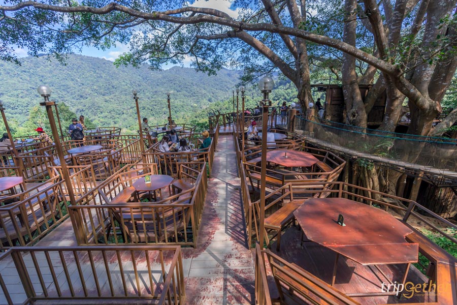 บ้านต้นไม้แม่กำปอง ร้านที่อยู่ท่ามกลางธรรมชาติ มองเห็นทิวเขาได้แบบ 180 องศา บรรยากาศรอบๆ โอบล้อมด้วยต้นไม้ใหญ่หายใจได้เต็มปอดสุดๆ ลมพัดเย็นสบายตัดกับวิวสวยๆ เครื่องดื่มเย็นๆ เบเกอรี่หวานๆ เข้ากันมากรับรองว่าฟินแน่นอน ไฮไลท์ของทางร้านคือการนั่งรอชมพระอาทิตย์ตกดินที่มีความสวยงาม เพราะทางร้านมีมุมที่ให้นั่งหันหน้าชมวิวและที่นั่งมากมายให้เลือกตามชอบและเมนูที่หลากหลาย และที่นี่ยังมีเครื่องดื่มกาแฟที่เมล็ดกาแฟมาจากโรงคั่วของทางร้านเอง ใส่ใจลูกค้าสุดๆ คอกาแฟต้องห้ามพลาดมาลิ้มลองกันได้เลย