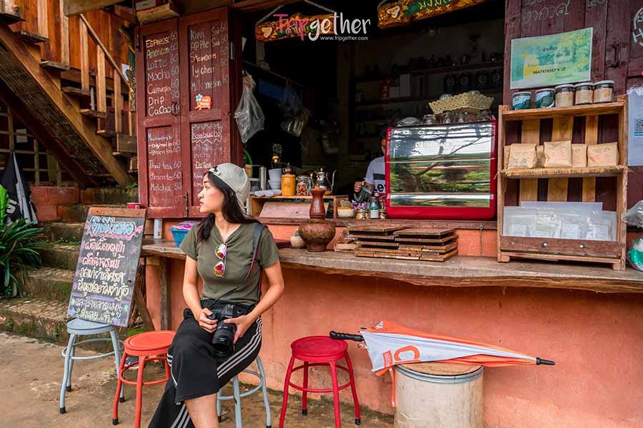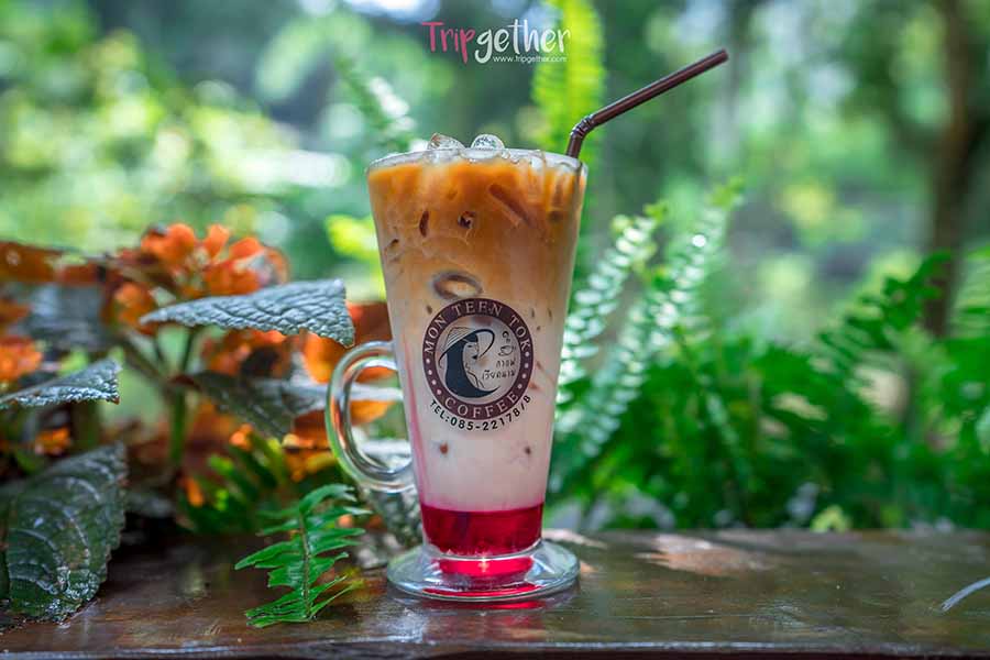 ต่อด้วยร้านคาเฟ่เล็กๆ บนเนินผากลางป่าเขียว ม่อนตีนตก ร้านนี้ถึงจะไม่ได้อยู่ติดลำธาร แต่ก็มีบ่อน้ำเล็กๆ บรรยากาศกรีนๆ และสวนดอกไม้จัดโชว์ได้อย่างสวยงาม ตัวร้านมีทั้งโซนที่เป็นระเบียงโล่งรับลม และโซนบ้านไม้ไผ่ที่ตกแต่งได้อย่างวินเทจ มากมายด้วยมุมเซลฟี่สวยๆ อัพเทดลงโซเชียล ส่วนเมนูร้านนี้จะขึ้นชื่อเรื่องกาแฟ ที่นำสูตรยกมาจากเวียดนามแท้ๆ น่าแวะมาล้ิมลองความอร่อยกันจริง