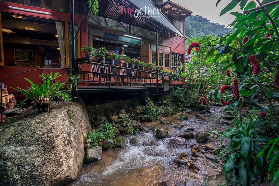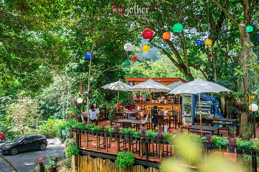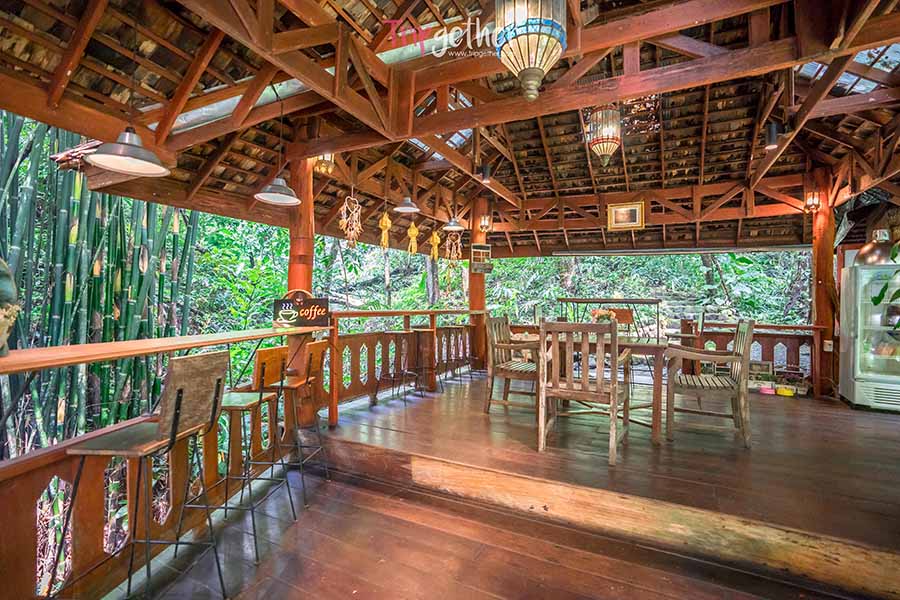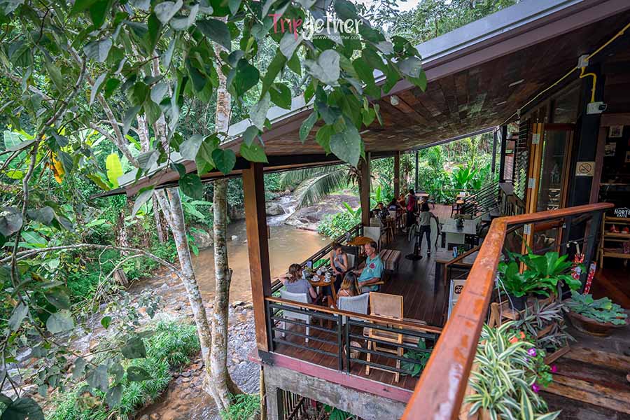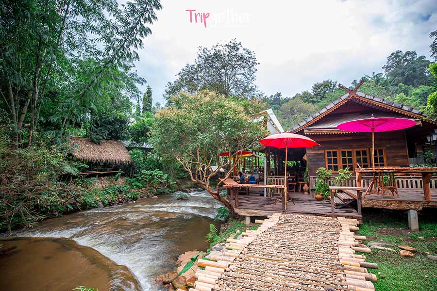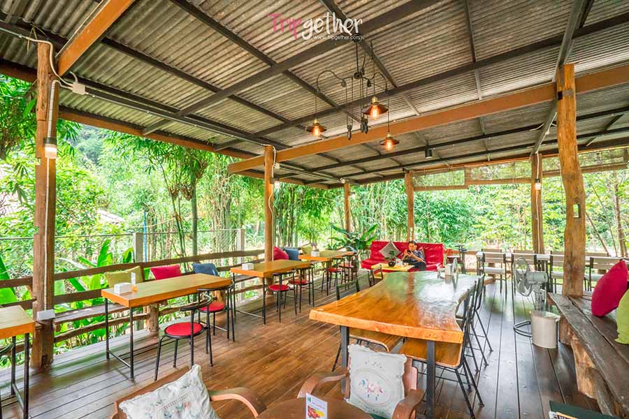 เดอะ ฟอร์เรส พีซ ฟอร์เรส อีกหนึ่งร้านริมลำธารสายใหญ่ ที่ตั้งอยู่กลางป่า หลีกหนีจากถนนเข้ามาอย่างเงียบสงบ ร้านนี้ขึ้นชื่อเรื่องความชิลล์ ที่หลายคนมักจะมาแวะนั่งอ่านหนังสือ อยูกับตัวเอง ปลดปล่อยความรู้ไปกับธรรมชาติ เข้ามาภายในมีสะพานทอดยาวพาเราเข้าไปยังร้าน ซึ่งจะพบกับบาร์กลิ่นหอมกรุ่นและมุมนั่งชิลล์ๆ มากมาย ที่พร้อมจะพาคุณหลับไหลได้ทุกเมื่อ ส่วนเมนูฟอร์เรส ก็มีทั้งอาหารคาว เบเกอรี่ และเครื่อง เสริฟครบจัดเต็ม ถึงราคาจะแอบสูงสักนิดแต่คุณภาพรับรองว่าสมราคา แค่บรรยากาศก็คุ้มแล้ว