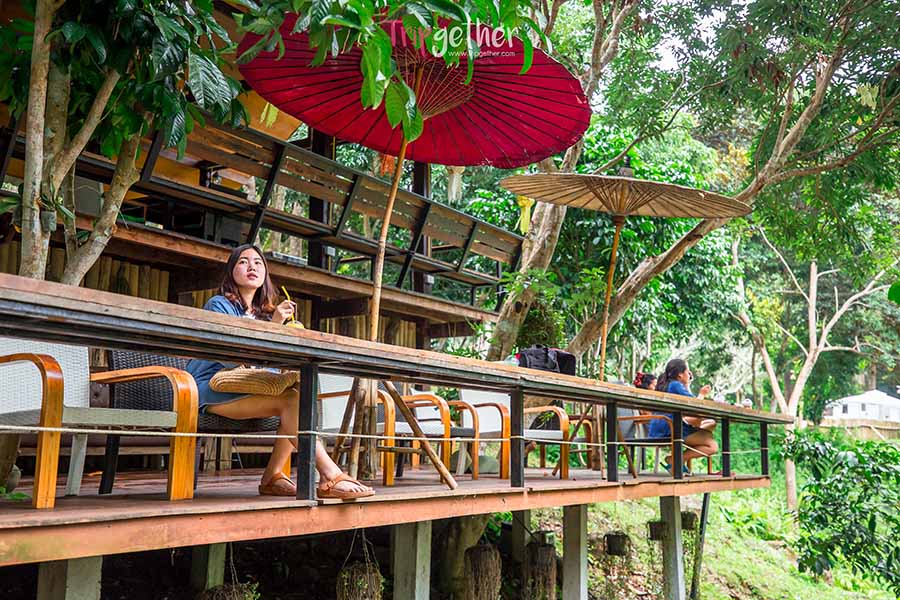 ไร่กาแฟปางร่ม ร้านคาเฟ่ที่บริการทั้งเบเกอรี่ เครื่องดื่ม และอาหารที่เหมาะแก่การมาพักรถในยามบ่าย ร้านนี้นอกจากจะมากมายด้วยเมนูอร่อยแล้ว บรรยากาศยังสุดยอด เพราะตั้งอยู่ริมลำธารกว้างและแวดล้อมด้วยเหล่าต้นไม้ เรียกว่ารับออกซิเจนกันแบบเต็มปอด ตัวร้านมากมายด้วยมุมนั่ง และทั่วร้านประดับประดาด้วยร่มหลากสีสัน แฝงกลิ่นอายของความเป็นเมืองเหนือได้อย่างน่ารัก ที่สำคัยสำหรับใครอยากคลายร้อนก็สามารถลงไปเล่นน้ำในลำธารได้ด้วยนะ