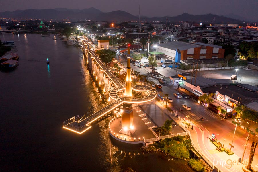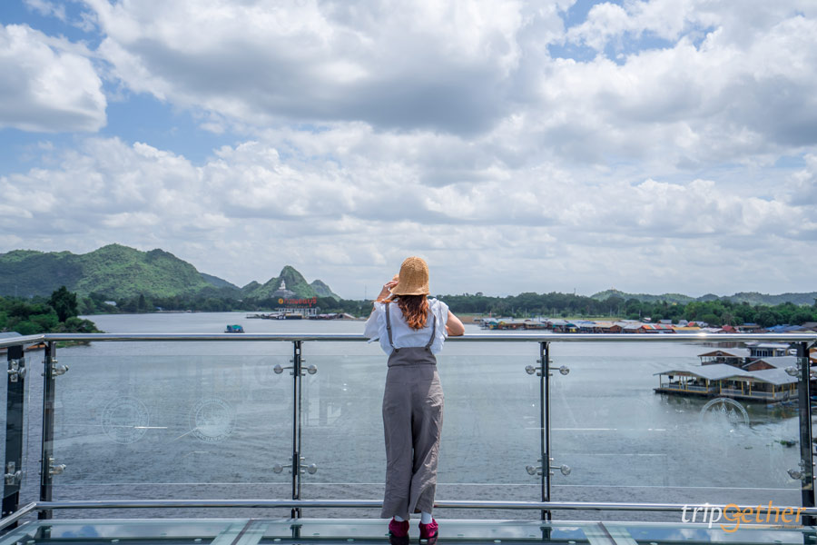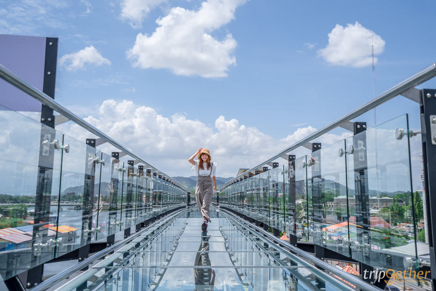 พามาชมบรรยากาศวิวเมืองที่ สกายวอล์คเมืองกาญจน์ อีกหนึ่ง จุดชมวิวสวย ใกล้กรุงเทพ บนความสูงประมาณ 12 เมตร ระยะทางยาว 150 เมตร ทอดยาวตลอดริมแม่น้ำ สามารถชมทิวทัศน์ได้แบบพาโนรามา เห็นทั้งวิวชุมชน แพริมน้ำ ที่อยู่อีกฝั่งจากตัวเมือง และพอหันไปอีกด้านก็จะเห็นวิวทิวเขาที่อยู่ตัดกับโค้งน้ำและท้องฟ้าสีคราม ทั้งยังเป็นจุดที่สามารถเห็นแม่น้ำแควใหญ่และแม่น้ำแควน้อยที่มาบรรจบกันรวมเป็นแม่น้ำแม่กลองอีกด้วยนะ แถมตอนกลางคืนจะมีการเปิดไฟตลอดทั้งทางเดิน บอกเลยว่างานแสงสีปังมาก ต้องมาเช็คอินด่วน!