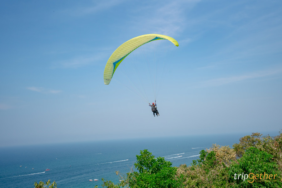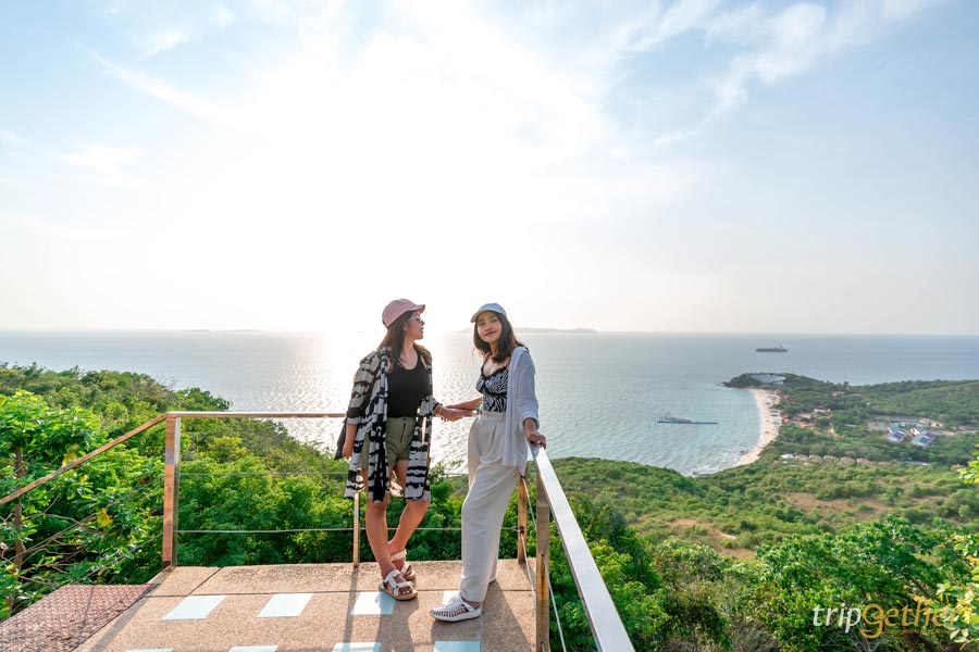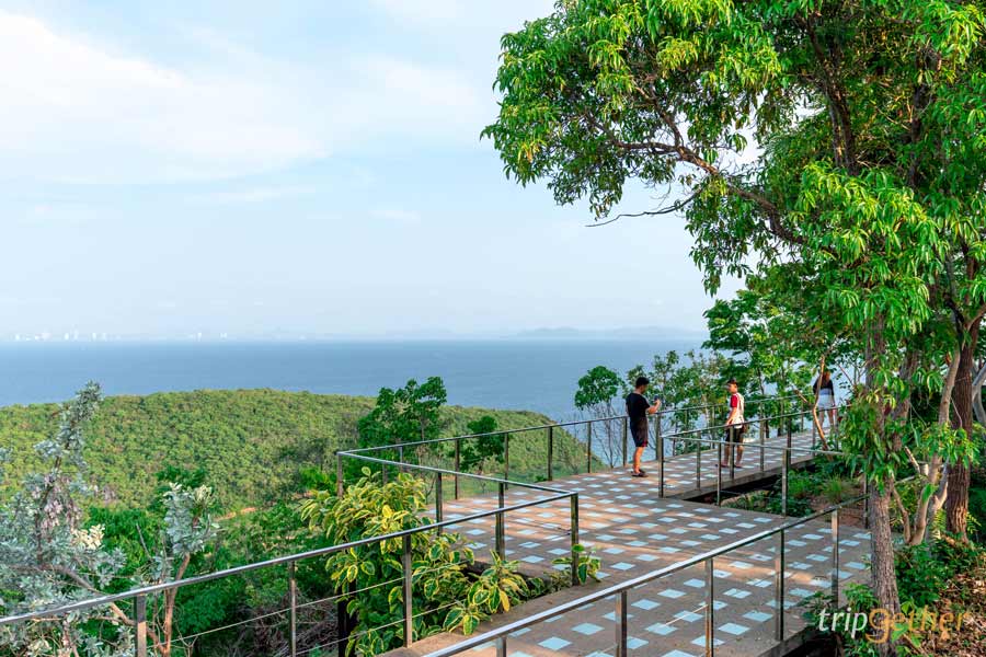 และอีก จุดชมวิวสวย ใกล้กรุงเทพ ที่พลาดไม่ได้เด็ดขาด นั่นก็คือ จุดชมวิวสำนักสงฆ์แสนล้าน หรือ จุดชมวิวหาดตาแหวน ซึ่งที่นี่มีไฮไลท์คือหลวงปู่ทวดองค์ใหญ่ที่ประดิษฐานอยู่ติดกับเนินเขา แถมยังสามารถมองเห็นวิวทะเลได้แบบชัดเจนสุดลูกหูลูกตาเห็นพร้อมกับความอุดมสมบรูณ์ของต้นไม้อีกด้วย นอกจากนี้จุดชมวิวสำนักสงฆ์แสนล้านยังมีกิจรรมการเล่นพาราไกลดิ้ง (paragliding) หรือเครื่องร่อนที่ใช้แรงลมในการลอยขึ้นไป บอกเลยว่าถ้าได้มาชมวิวที่จุดนี้จะสามารถเห็นคนร่อนพาราไกลดิ้งไปมาได้แบบใกล้ชิดสุดๆ ถือเป็น จุดชมวิวสวย ใกล้กรุงเทพ ที่ต้องมาเช็คอินเลย