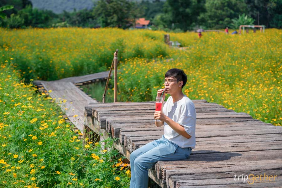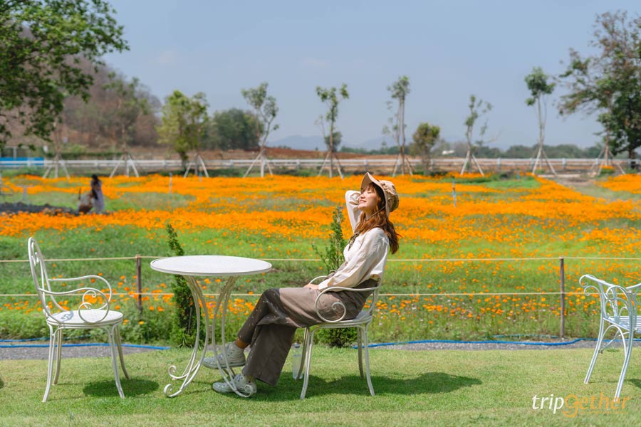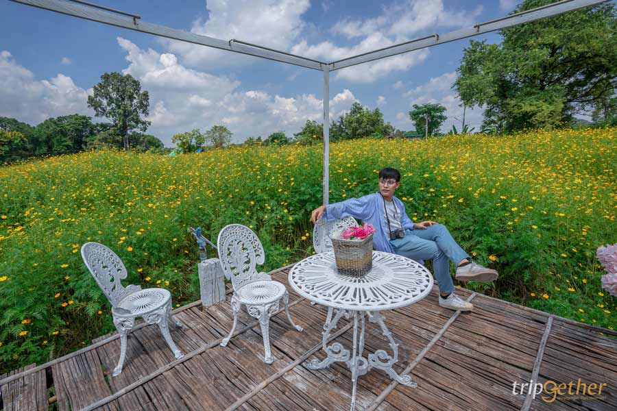 เช็คอินต่อที่อีกหนึ่งคาเฟ่กลางธรรมชาติและทุ่งดอกไม้รับรองว่าถูกใจสายถ่ายภาพแน่นอน กับ กระเพรา & คอฟฟี่ ที่นี่เป็นทั้งร้านอาหารและคาเฟ่ มีเมนูให้เลือกหลายอย่างครบทั้งของคาวหวานและเครื่องดื่ม เมนูแนะนำของที่นี่คือ ข้าวราดผัดกะเพรา รสเด็ดอร่อยเผ็ดกำลังดี ต้องลองเลย! และที่สำคัญคือทางร้านมีมุมน่ารักๆ ให้ได้ถ่ายรูปกันด้วย ไม่ว่าจะเป็นสะพาน บ้านไม้เล็กๆ ซุ้มที่นั่งกลางสวน ชุดโต๊ะเก้าอี้น้ำชา ใครที่ชอบถ่ายรูปก็สามารถเดินกดชัดเตอร์ได้ยาวๆ