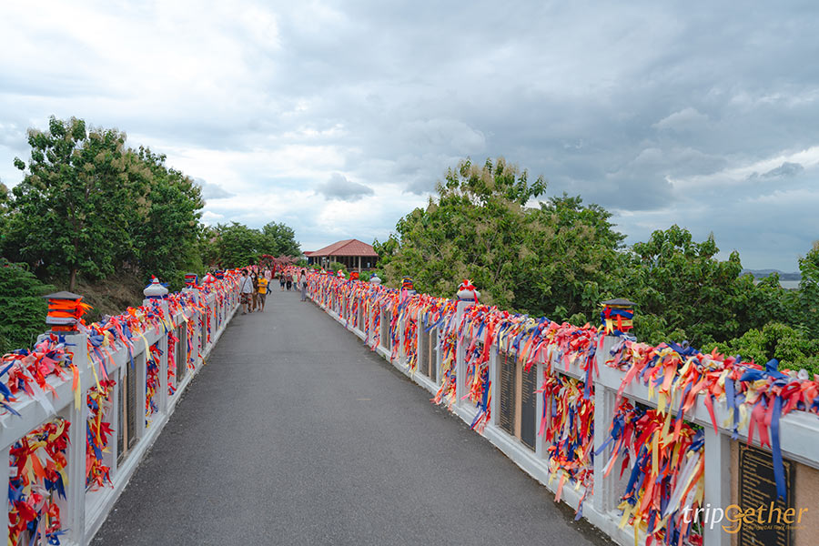 วัดเขาตะแบก ตั้งอยู่ในศรีราชา เป็นวัดดังที่มีไฮไลท์เยอะมาก เริ่มจากการผูกริบบิ้นขอพร โดยริบบิ้นแต่ละสีก็จะมีคำอธิษฐานที่ต่างกันไป หลังจากนั้นเราก็จะนำริบบิ้นไปผูกบนต้นไม้ มุมนี้ให้ฟีลเหมือนอยู่วัดที่ญี่ปุ่นเลย ต่อด้วยเดินดูวิวบนสกายวอล์ค รับลมสบายๆ และไหว้ขอพรกับพระพุทธโสธร พระพุทธรูปเก่าแก่ที่ประดิษฐานอยู่ในอุโบสถ ถือว่าเป็นที่เที่ยวศรีราชาที่ได้ทั้งมามูและมาเที่ยวสบายๆ