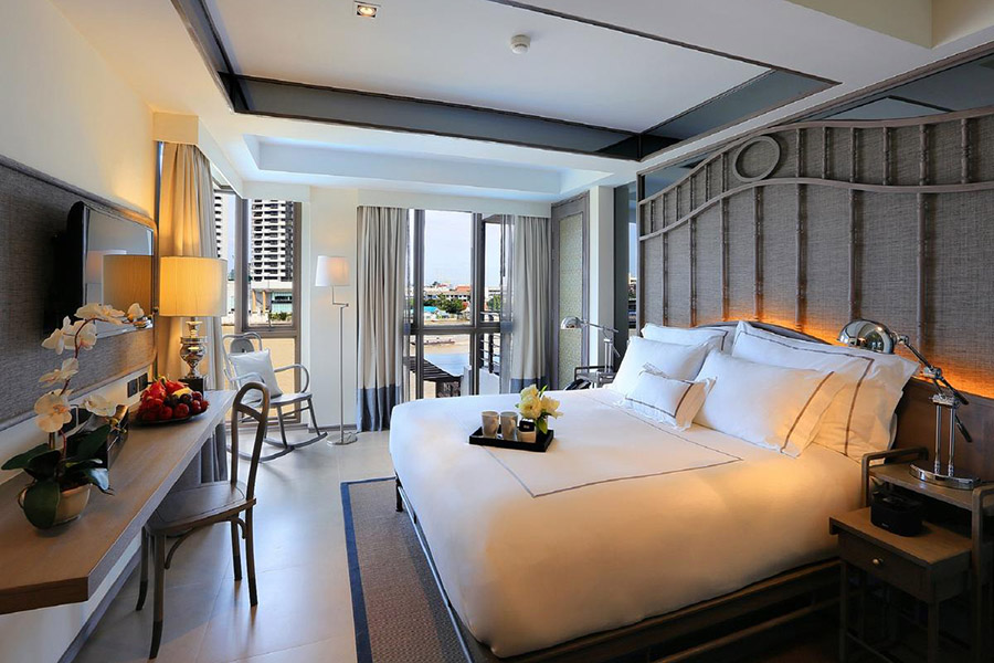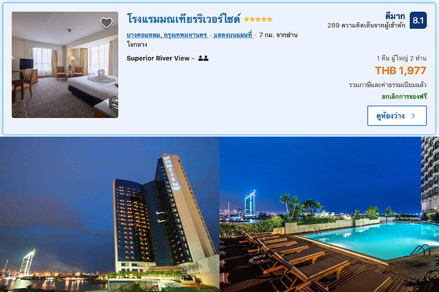 ต่อกันที่อีกหนึ่งโรงแรมหรูริมแม่น้ำเจ้าพระยา โรงแรมแม่น้ำ รามาดาพลาซา ที่ตั้งอยู่บนพื้นที่ใจกลางเมืองกรุง เพลิดเพลินไปกับสีสันของกรุงเทพทั้งในยามเช้าและเย็น นอกจากอยู่ริมแม่น้ำเข้าพระยาแล้ว ยังอยู่ตรงข้ามกับเอเชียทีค แลนด์มาร์คยอดฮิตของกรุงเทพ สำหรับห้องพักตกแต่งด้วยสไตล์ไทยโมเดิร์น มาพร้อมสิ่งอำนวยความสะดวกอย่างครบครัน มาพร้อมห้องพักให้เลือกถึง 12 รูปไทป์ ที่รับรองได้ว่าตอบโจทย์การเข้าพักทุกระดับ