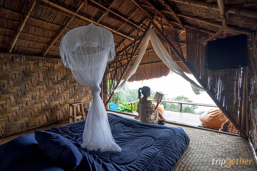 ต่อกันที่ สายหมอกบอกฮัก อีกหนึ่งที่พักสุดฟินของหมู่บ้านสะปัน อ.บ่อเกลือ จ.น่าน ตัวที่พักตั้งอยู่บนโลเคชั่นบนเนินเขาสูงสามารถมองเห็นวิวภูเขาและทุ่งนาได้แบบ 180 องศา ไม่ว่าจะฤดูไหนก็สามารถมาพักผ่อนกันได้แบบชิลล์ๆ โดยเฉพาะหน้าฝนและหน้าหนาว เพื่อนๆ จะได้มองเห็นวิวสายหมอกที่สวยงาม ที่นี่มีห้องพักให้เลือก 3 แบบคือ กระโจมแบบมีระเบียงส่วนตัว กระโจมแบบไม่มีระเบียง และ ห้องไม้ไผ่ ใครที่กำลังมองหาที่พักบรรยากาศชิลล์ วิวสายหมอก ต้องมาที่นี่เลย สายหมอกบอกฮัก